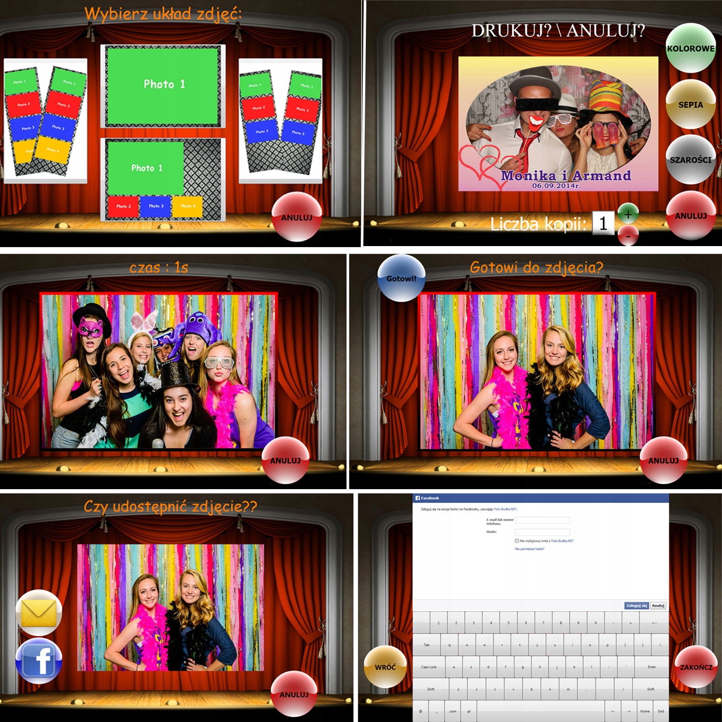 Конечно, мы также понимаем, что не для каждого мероприятия потребуется фотобудка с Facebook и обмен фотографиями на Facebook. Фейсбук желательно. Мы знаем, что иногда у наших клиентов разные приоритеты, и иногда конфиденциальность очень важна. Таким образом, программное обеспечение Foto-Budka NET дает владельцам и администраторам фотокабин и их программного обеспечения возможность полной настройки параметров работы программы, а функции публикации на Facebook или отправки по электронной почте - как и большинство других функций программы - могут быть выключен или включен в любое время - в любое время в зависимости от потребностей данной вечеринки или мероприятия.