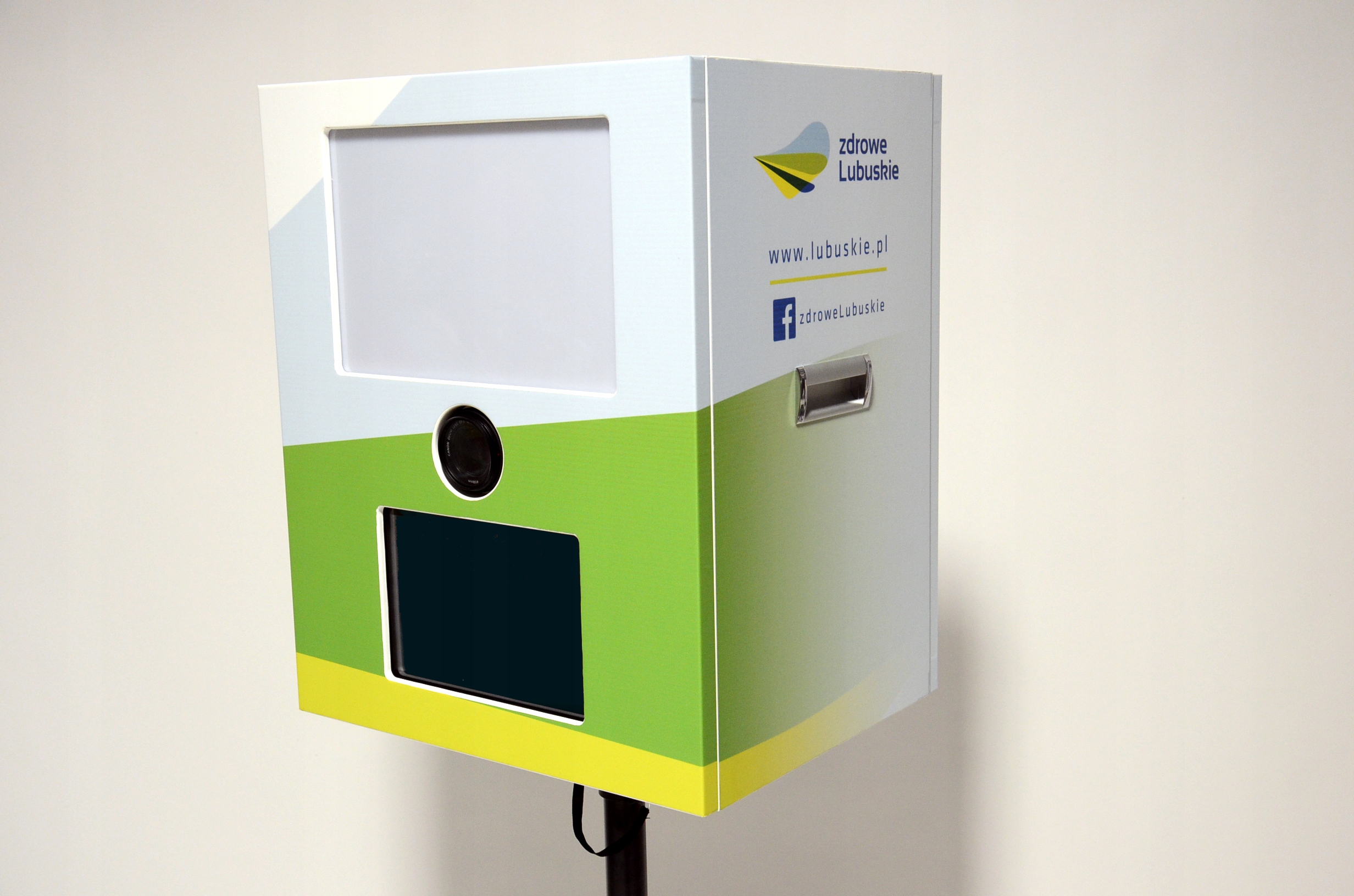 Идея разместить фотокабину на регулируемом штативе родилась в ответ на потребности наших клиентов, которые искали решение, идеально подходящее для взрослых, а при необходимости и для детей. Штатив позволяет плавно регулировать фотобудку вверх и вниз, а винт с накатанной головкой и штифты предотвращают падение устройства.
