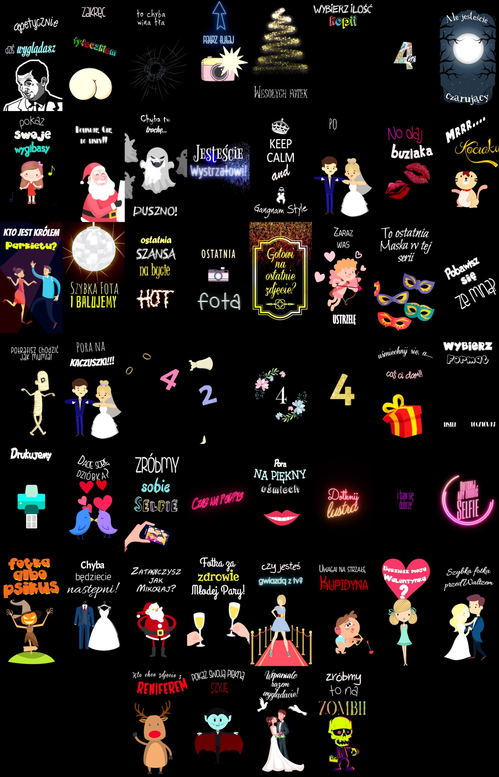 Купив наше устройство, вы получите полный доступ к нашей библиотеке анимации. Сборник из нескольких десятков юмористических анимаций на польском языке с озвучкой. В комплекте с зеркалом вы сможете скачать анимации из следующих пакетов: Стандартный, Свадьба, День святого Валентина, Хэллоуин, Рождество и Карнавал.