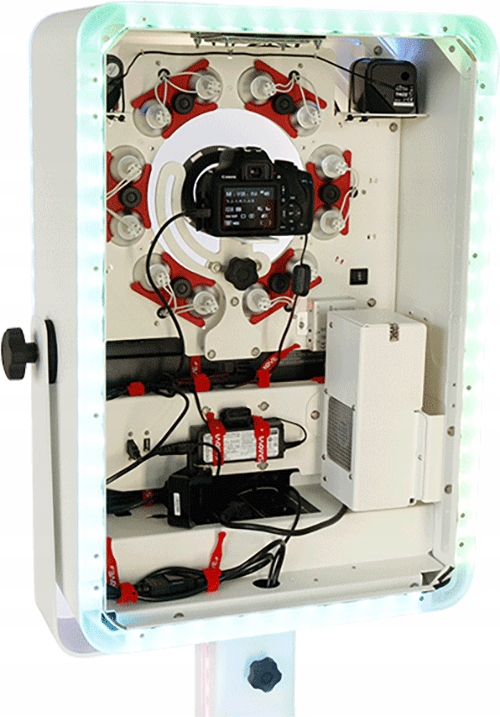 Фотобудка имеет полностью интегрированную систему электропитания на базе основного модуля, расположенного в верхней части устройства.