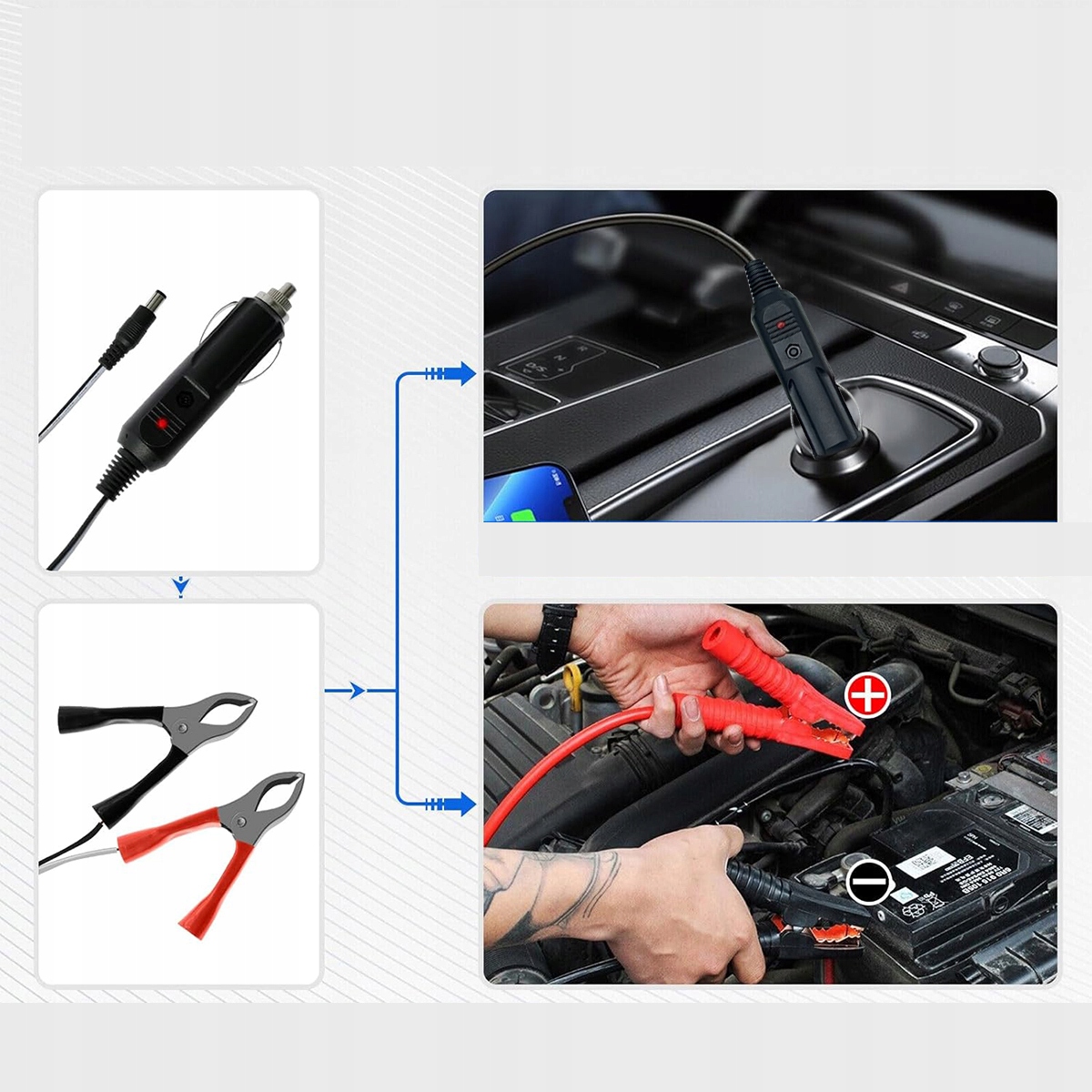 Просто подключите зажигалку к разъему или подключите зажимы аккумулятора с помощью зажима крокодила, и соединение может быть сделано в течение 3 минут! Подходит для автомобилей, грузовиков, лодок, травянистых косилок, мотоциклов, прицепов, самосвалов, тракторов, туристов, фургонов, туристов, транспортных средств ATV, аккумуляторных автомобилей и т. Д.