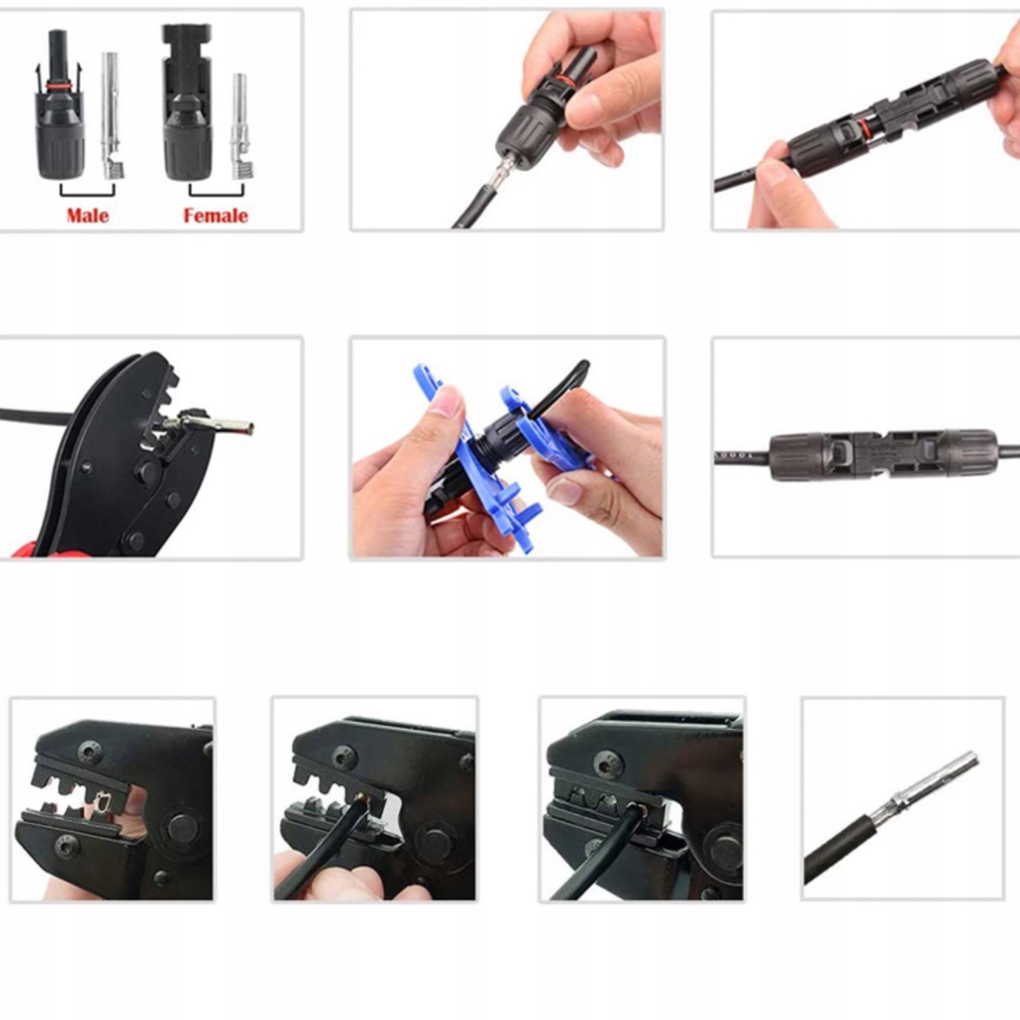 Комплект предназначен для использования с солнечным кабелем. Разъемы используются для подключения фотоэлектрических панелей.