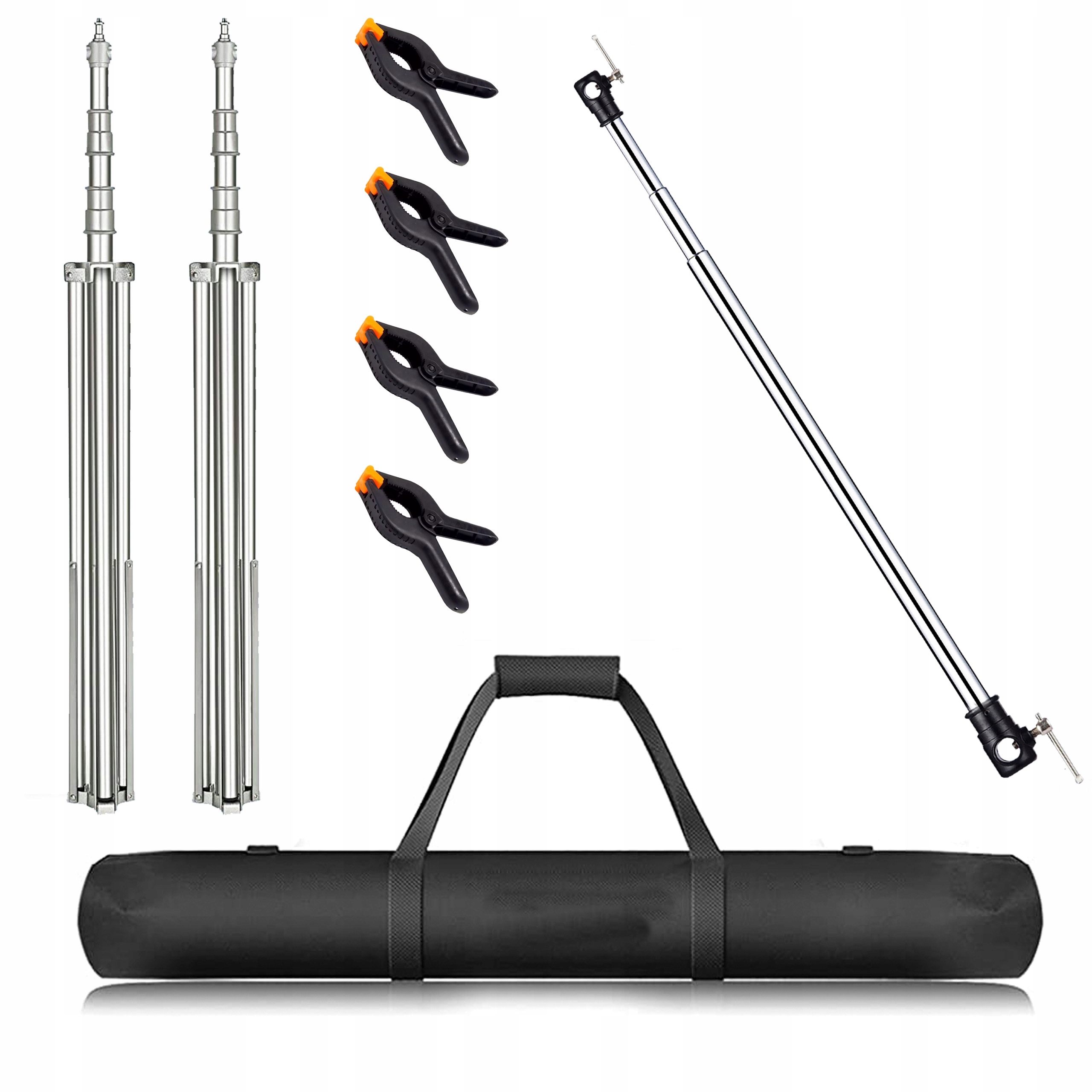 ✔️ В комплект входит - Два штатива из нержавеющей стали, перекладина, сумка для транспортировки, клипсы для крепления