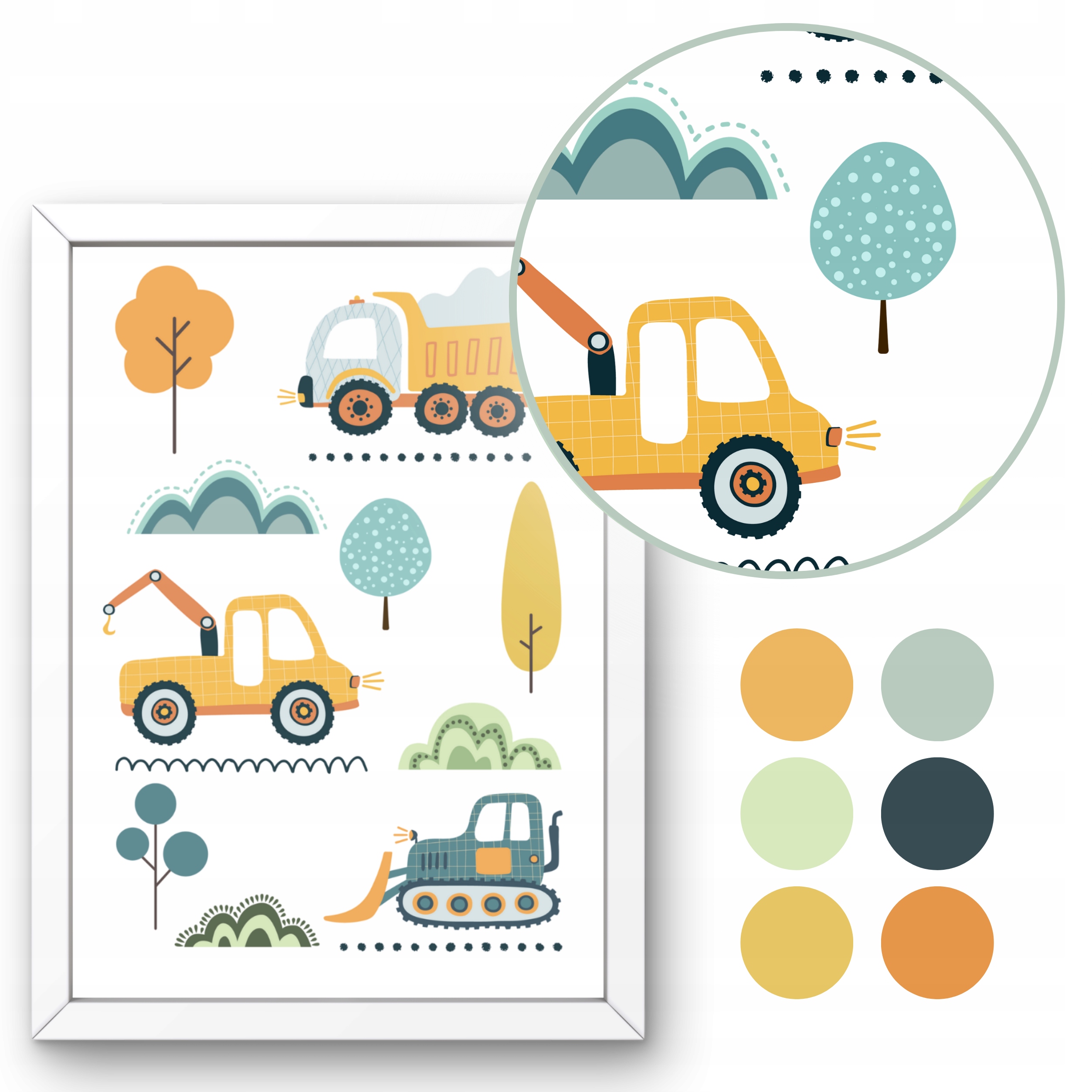 Картинки для детской детской комнаты установили 3 плакаты строительные машины A4