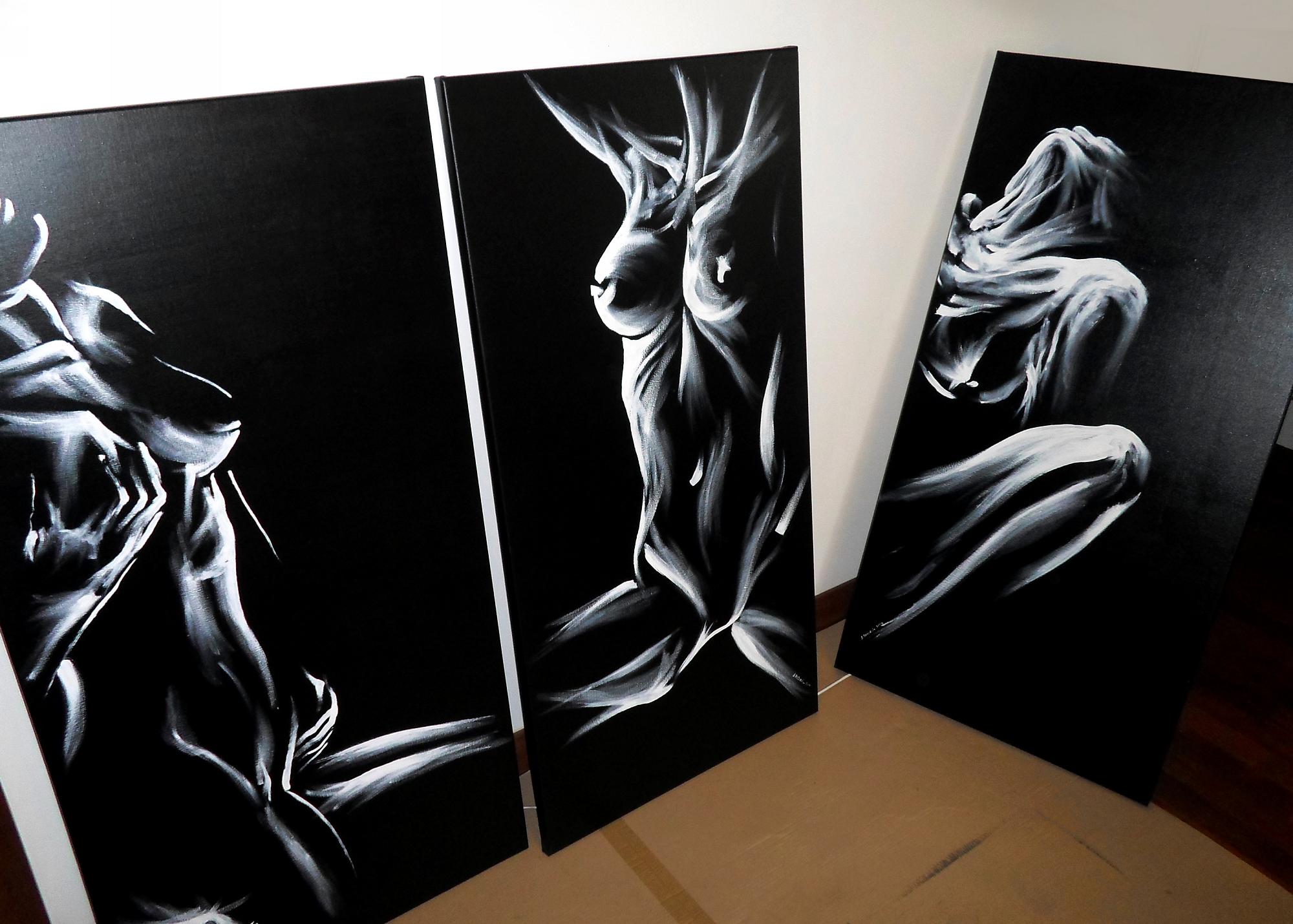 Современный акт Три черно -белых абстрактных изображения под названием «Акты женщины» h1>