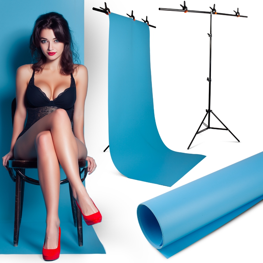 Фотографический набор T + синий виниловый фон + 4 клипы