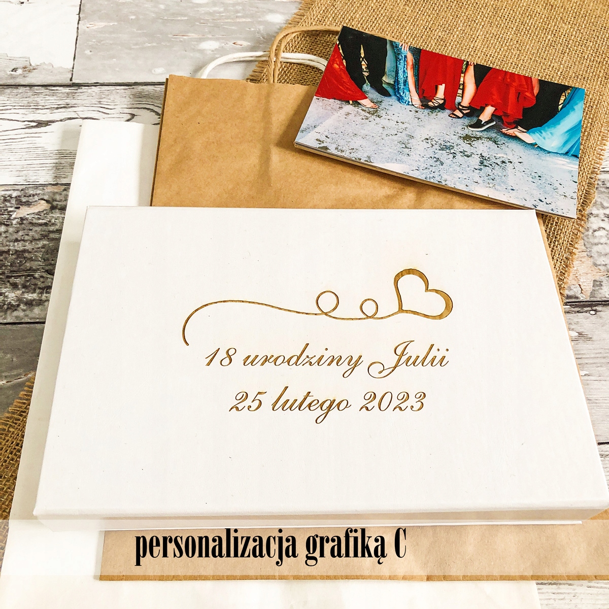 К коробке прикреплена ленточка, чтобы было легче доставать фотографии.