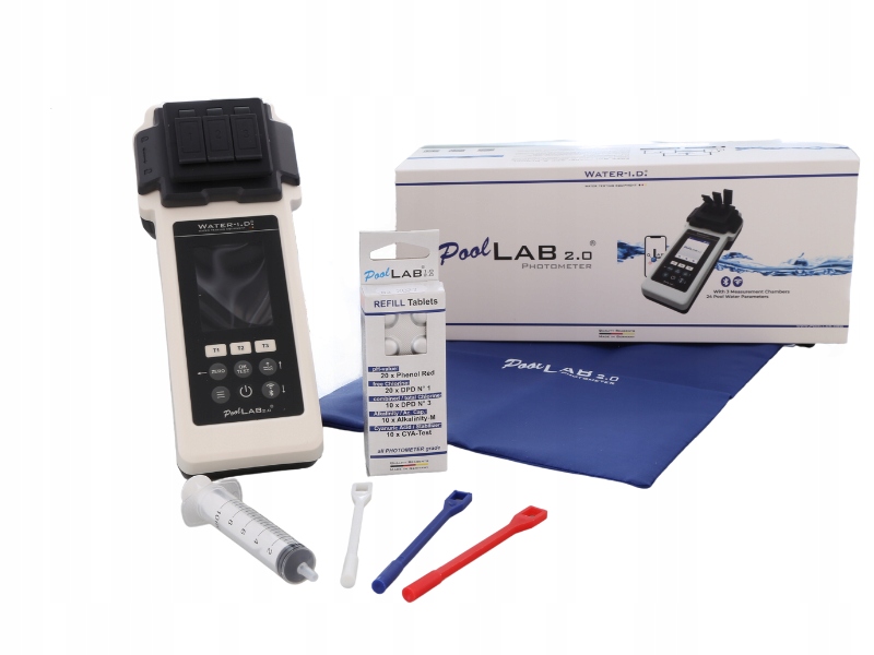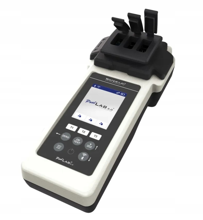 ✅ PoolLab 2.0 имеет 3 фотометра. измерительные камеры, благодаря которым он может измерять до 24 параметров воды (в том числе жесткость воды, медь, хлор, фосфаты, значение pH, щелочность и активный кислород).