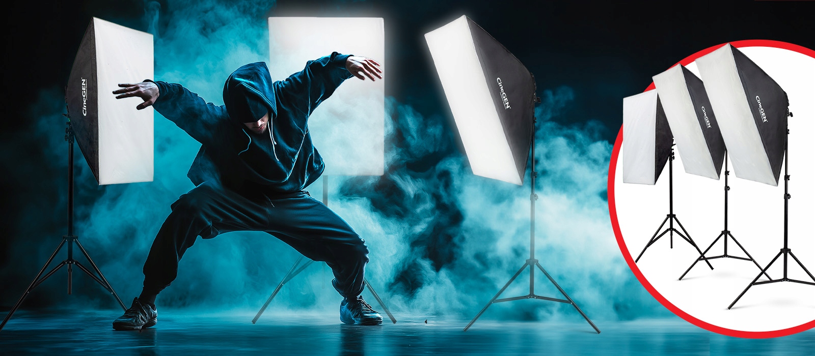 В комплекте использовано профессиональное студийное освещение непрерывного действия — три софтбоксных лампы по пять лампочек на осветительных стойках. В светильниках используются светодиодные лампы серии Ignitix™ со стандартизированными параметрами (цветовая температура 5500К и индекс цветопередачи CRI >90). Софтбоксы – это базовый элемент фотостудии. Они смягчают тональные переходы между светом и тенью. Свет равномерно распределяется внутри софтбокса и сохраняет одинаковую мощность по всей поверхности рассеивателя. Кроме того, используется второй внутренний рассеиватель для еще лучшего управления светом. Внешняя поверхность софтбокса матово-черная, поэтому она не отражает свет других ламп. Раскладывать и складывать чрезвычайно легко, а сложенный софтбокс занимает мало места. Качественные материалы, из которых изготовлен софтбокс, гарантируют безотказную работу долгие годы.