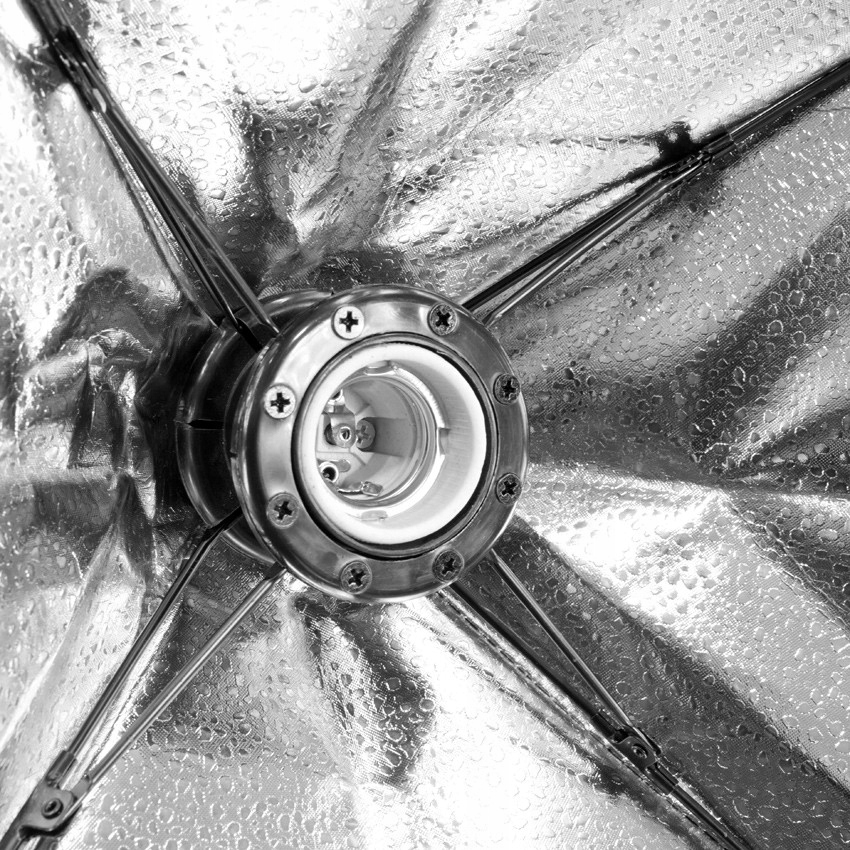 Используемый светильник представляет собой СОФТБОКС, интегрированный с цоколем E27, предназначенный как для ламп-вспышек, так и для ламп постоянного света. Балдахин размером 50х70 см внутри отделан серебристым материалом. Свет равномерно распределяется внутри софтбокса и сохраняет одинаковую мощность по всей поверхности рассеивателя. Внешняя часть софтбокса матово-черная, поэтому не отражает свет других ламп.