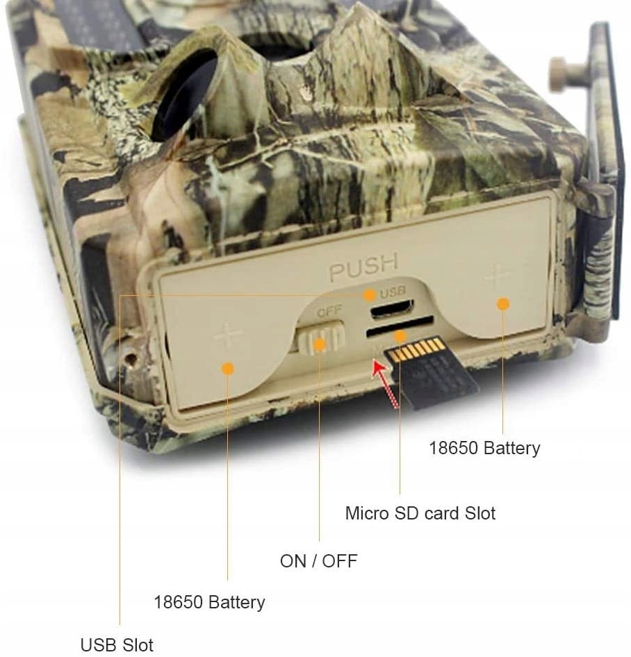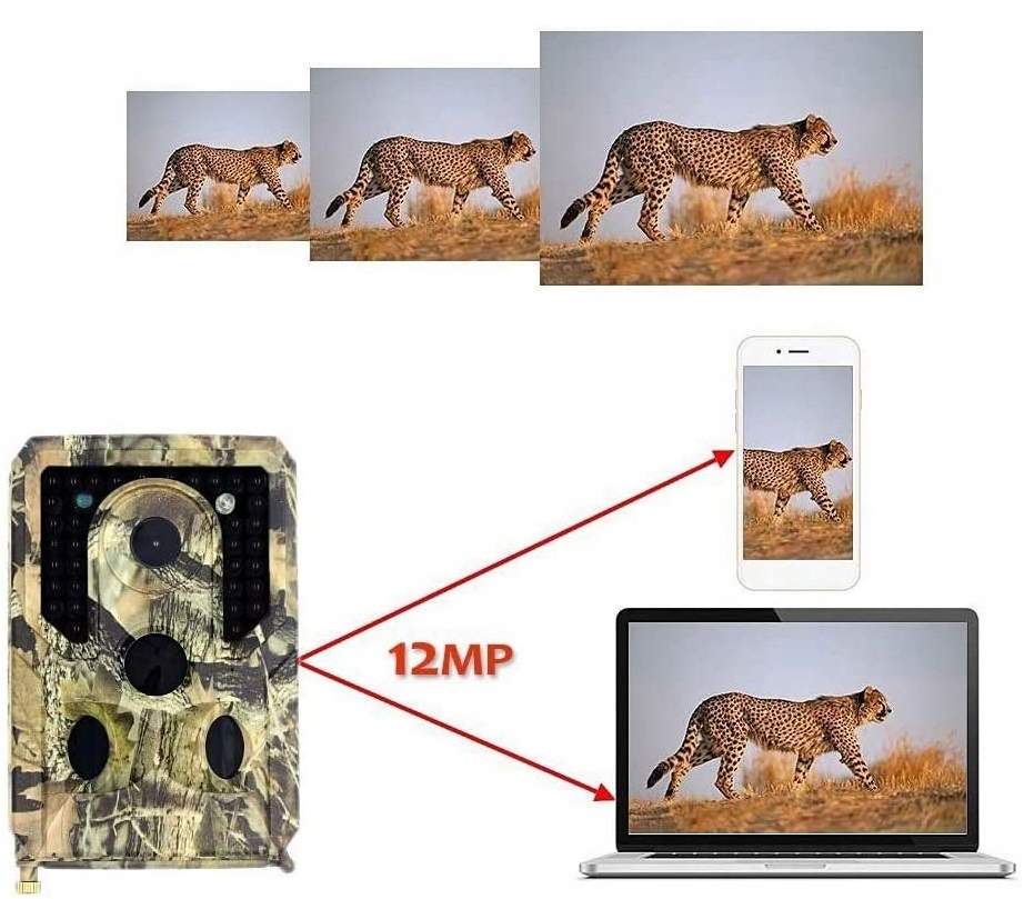 Фотоловушка PR400 – технически совершенное устройство для автоматической записи фото и видео. Это обеспечивает нам постоянный и незаметный надзор за интересующим нас объектом. Благодаря аккумулятору, водонепроницаемому корпусу камуфляжного цвета и простоте установки их можно установить где угодно. Фотоловушка оснащена инфракрасным датчиком движения, который автоматически активирует камеру для съемки серии от 1 до 5 фотографий и записи видео продолжительностью 5, 10, 20, 30 секунд. В течение дня записанные изображения полностью красочны и точны. Ночью благодаря использованию 34 специальных ИК-диодов с невидимой вспышкой мы получаем подсвеченные и четкие черно-белые фотографии и видео.