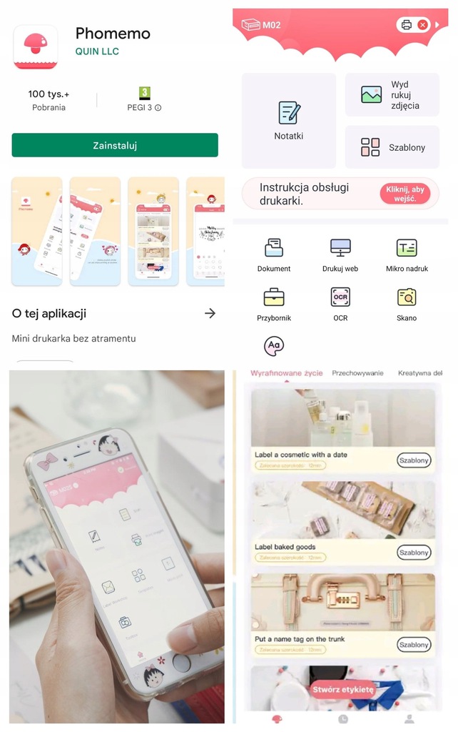 С интуитивно понятным и бесплатным приложением Phomemo на польском языке для Android и iOS: