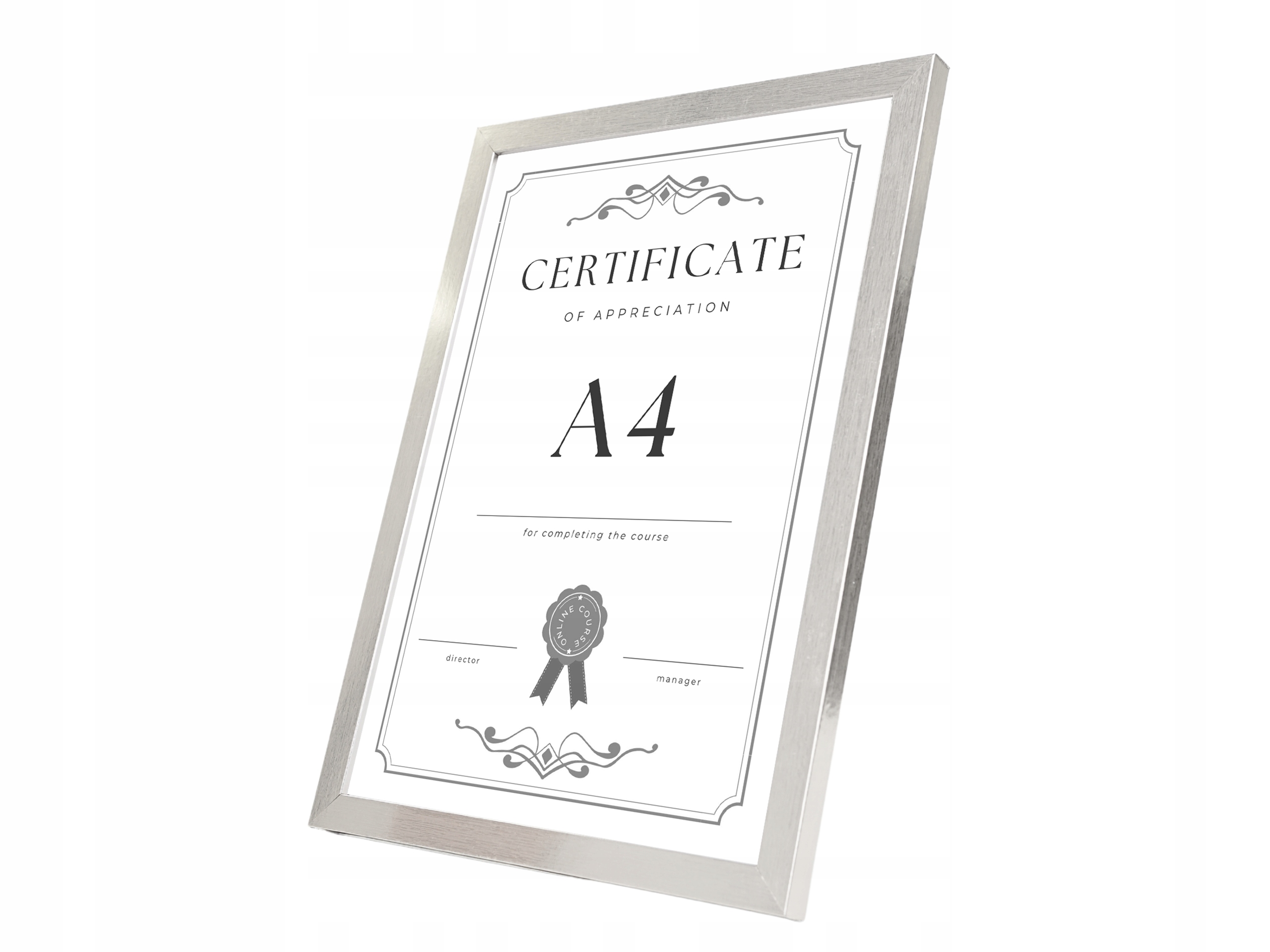 РАМКА ДЛЯ ФОТО СЕРЕБРЯНАЯ РАМКА ДЛЯ ФОТО А4 21х29,7 см ДЛЯ СЕРТИФИКАТА ДИПЛОМНОГО ОФИСА