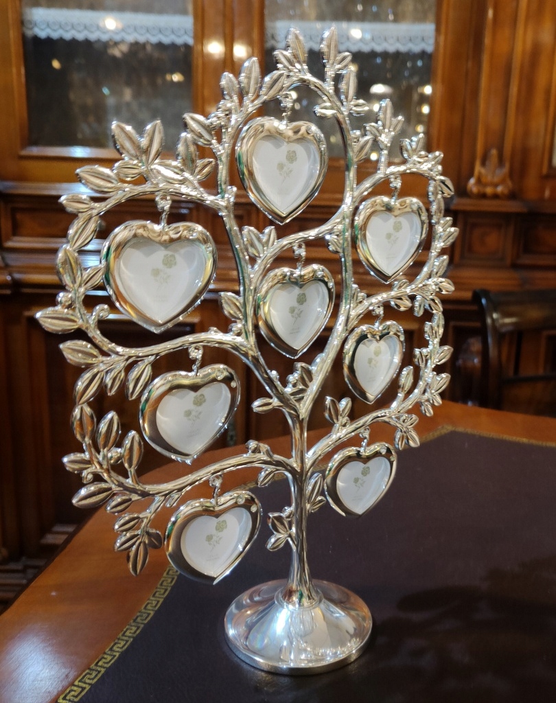 Привлекательный набор из 8 овальных рамок как сердце генеалогического древа. Изготовлен из сплава цинка, покрыт серебром; дополнительно украшен кристаллами. Благодаря чудесной форме фотографии ваших близких выглядят элегантно, и вся эта вещь непременно станет украшением вашего дома или отличным подарком на случай.