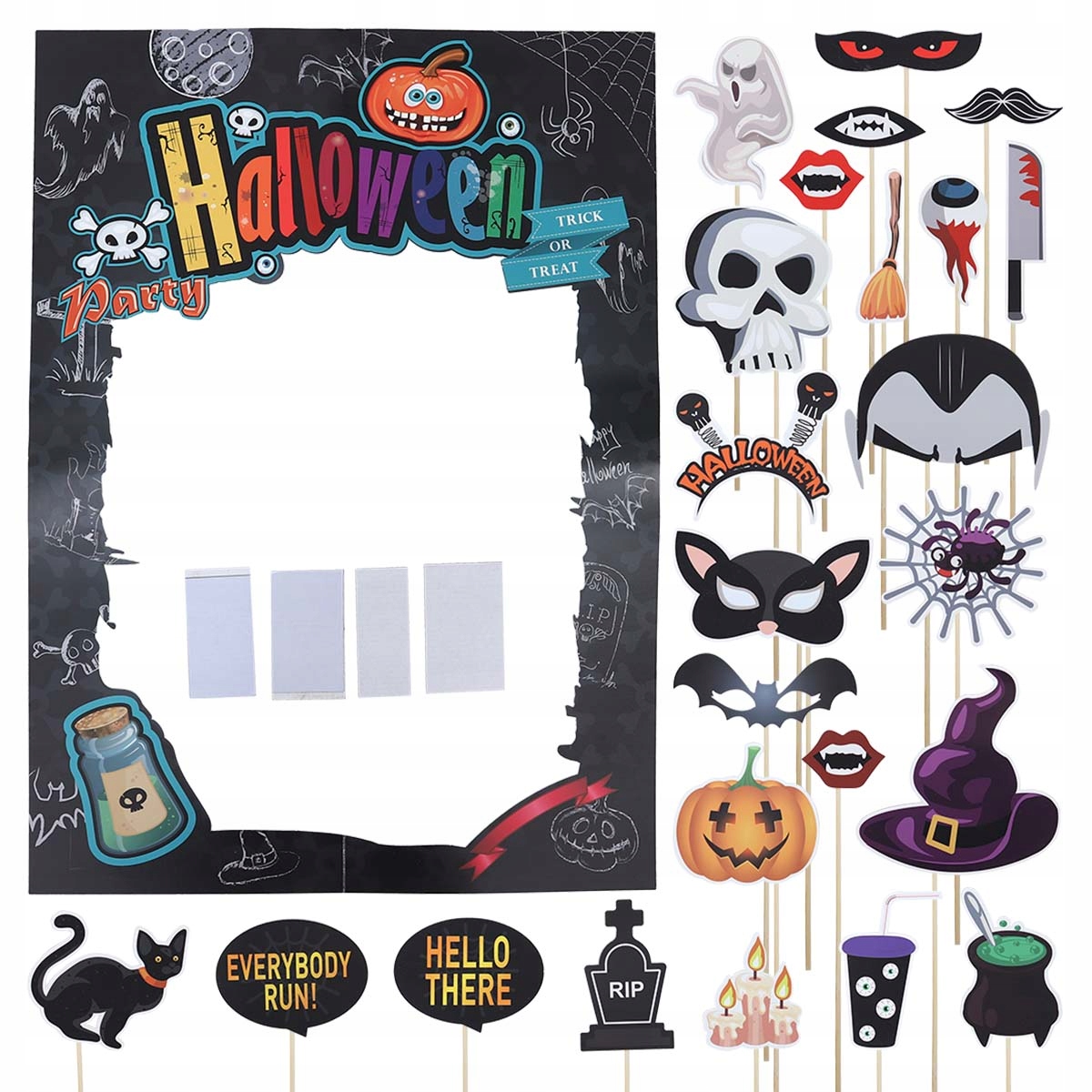 🌈Хотите какой-нибудь особенный реквизит для фотографий на Хэллоуин? Эта фоторамка и опора для портативной камеры станут хорошим выбором. Изготовлен из бумажного материала, очень гибкий и практичный. Дизайн ужасов может добавить пугающую и веселую атмосферу. Между тем, с его помощью можно сделать множество памятных фотографий с разными картинками или фигурками. Оставьте незабываемые воспоминания о Хэллоуине.