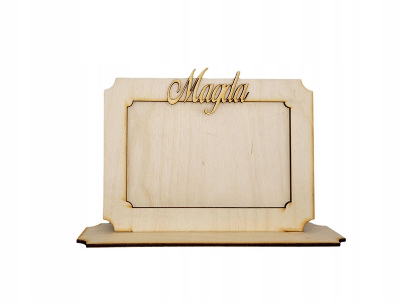 Деревянная фоторамка с вашей индивидуальной надписью. Именная рамка – это красивое украшение и отличный сувенир. Рамка также является оригинальным подарком на рождение, Святое Крещение, годик, день рождения, свадьбу или юбилей. Лазерная резка изделия, точная и аккуратная гравировка. В рамке можно разместить максимум 3 слова или цифры, например: Имя, псевдоним, дата, 30-я годовщина свадьбы, M&M, День рождения Магдалены, Крещение Тимона. Размер надписи будет подогнан под длину рамки, максимальная высота надписи 4 см. В рамке находится фотография размером 10 x 15.