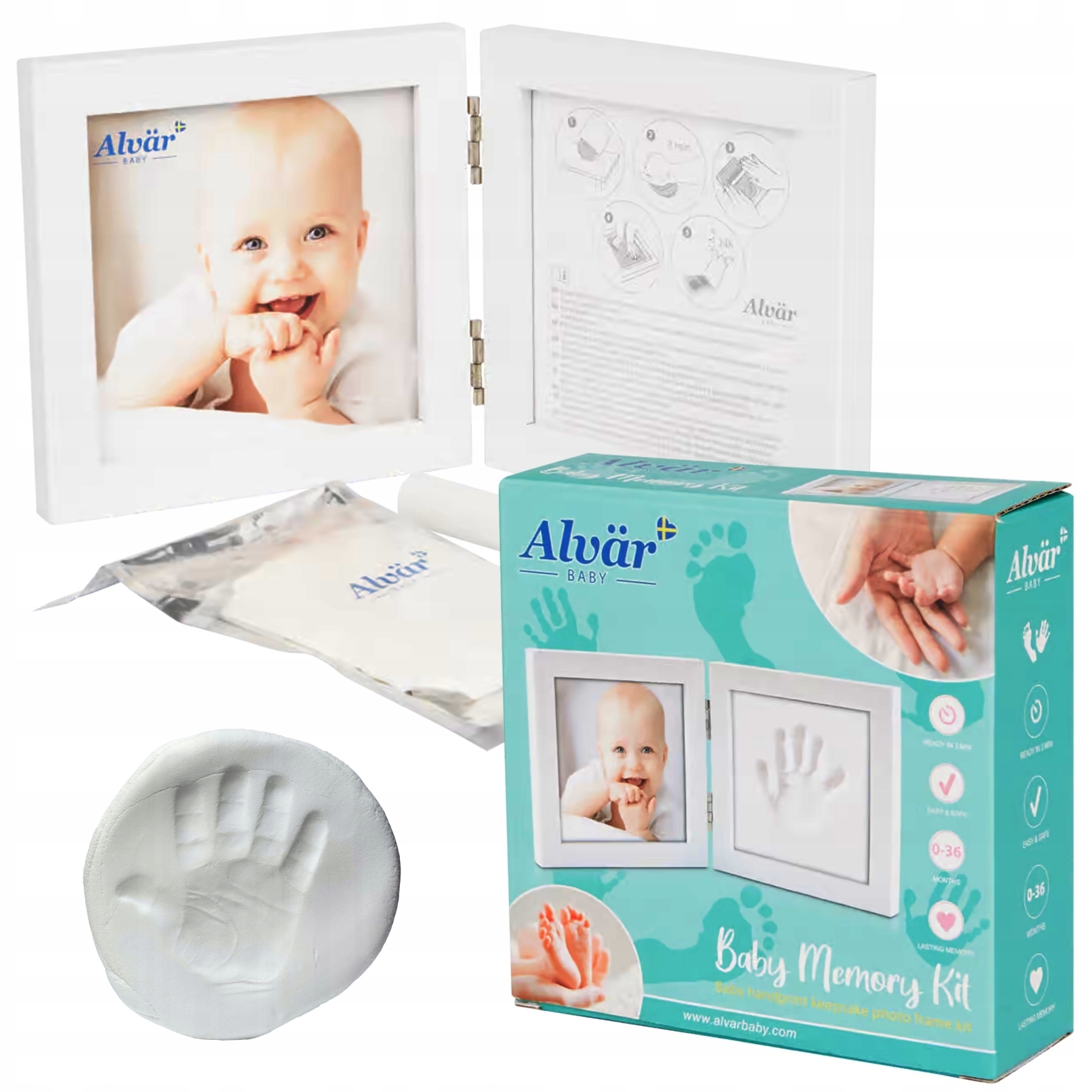 РАМКА ДЛЯ ФОТО С ГЛИНОЙ ДЛЯ СЛЕДОВ ДЕТСКИХ РУК, БЕЛАЯ BABYSHOWER