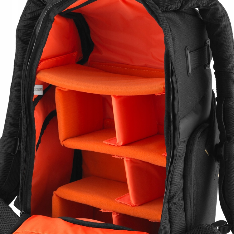 Отделение рюкзака Fancier KingKong I 30 разделено на две зоны: хозяйственную и личную. Хозяйственная зона имеет две дополнительные боковые створки, обеспечивающие быстрый доступ к фототехнике. Все организовано с помощью пенопластовых перегородок, крепящихся на липучке, которые можно настроить по своему желанию. Личная часть — это верхняя часть рюкзака, доступ к которой также возможен сверху. Благодаря этому вы сможете хранить там личные вещи, не расстегивая всю заднюю часть рюкзака.