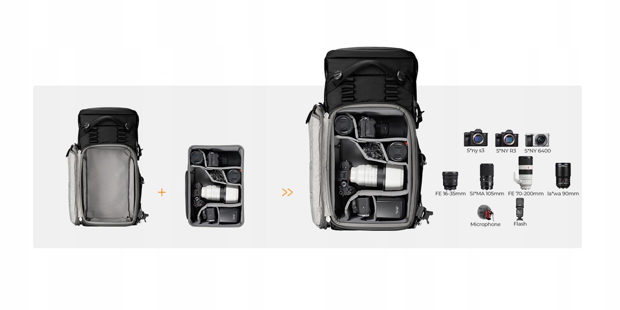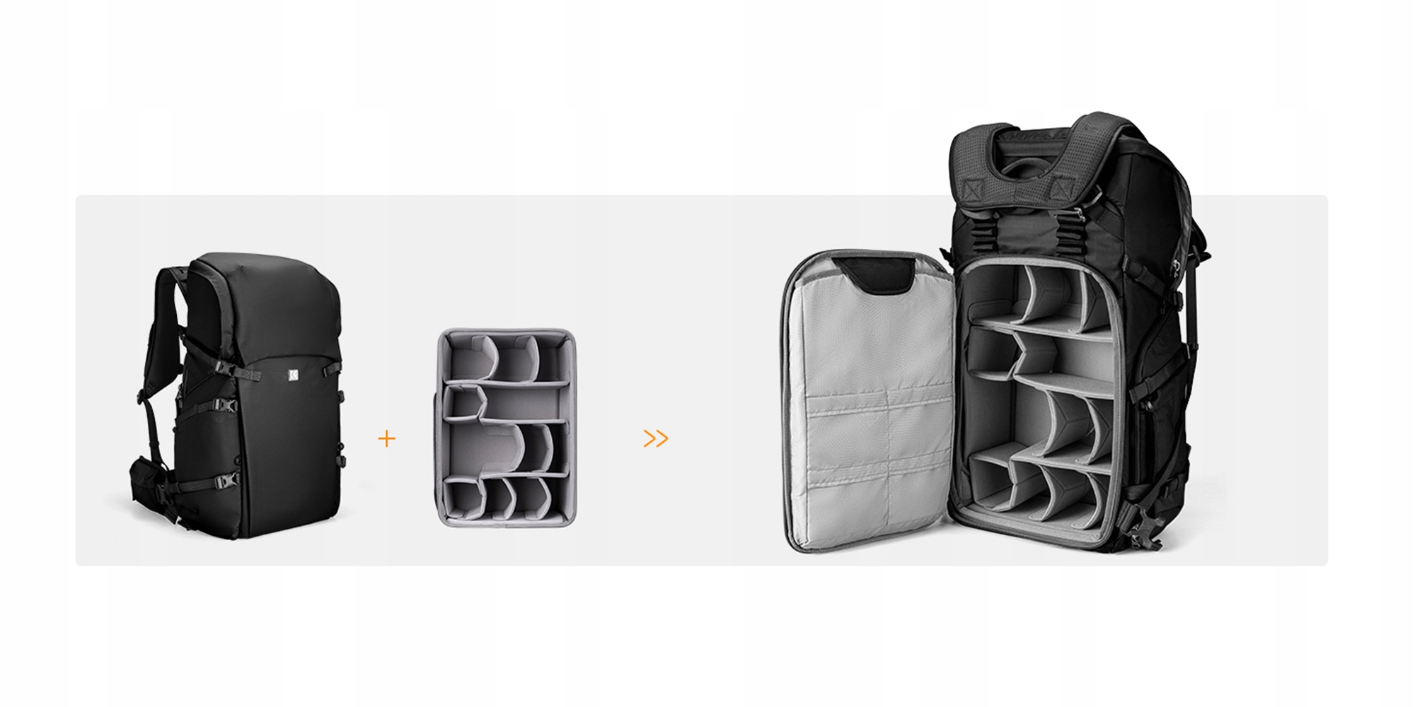 Фоторюкзак K&F Concept Star Wander 05 предлагает до 40 литров полезного пространства. Внутри вы найдете съемный фотовкладыш размером 42 х 17 х 28 см с 11 мягкими отделениями, которые можно свободно конфигурировать с помощью липучек. Это позволяет идеально подобрать интерьер к типу оборудования — независимо от того, работаете ли вы с несколькими корпусами и объективами, дроном или камерой. После снятия вставки рюкзак можно использовать как вместительный дорожный или треккинговый багаж.
