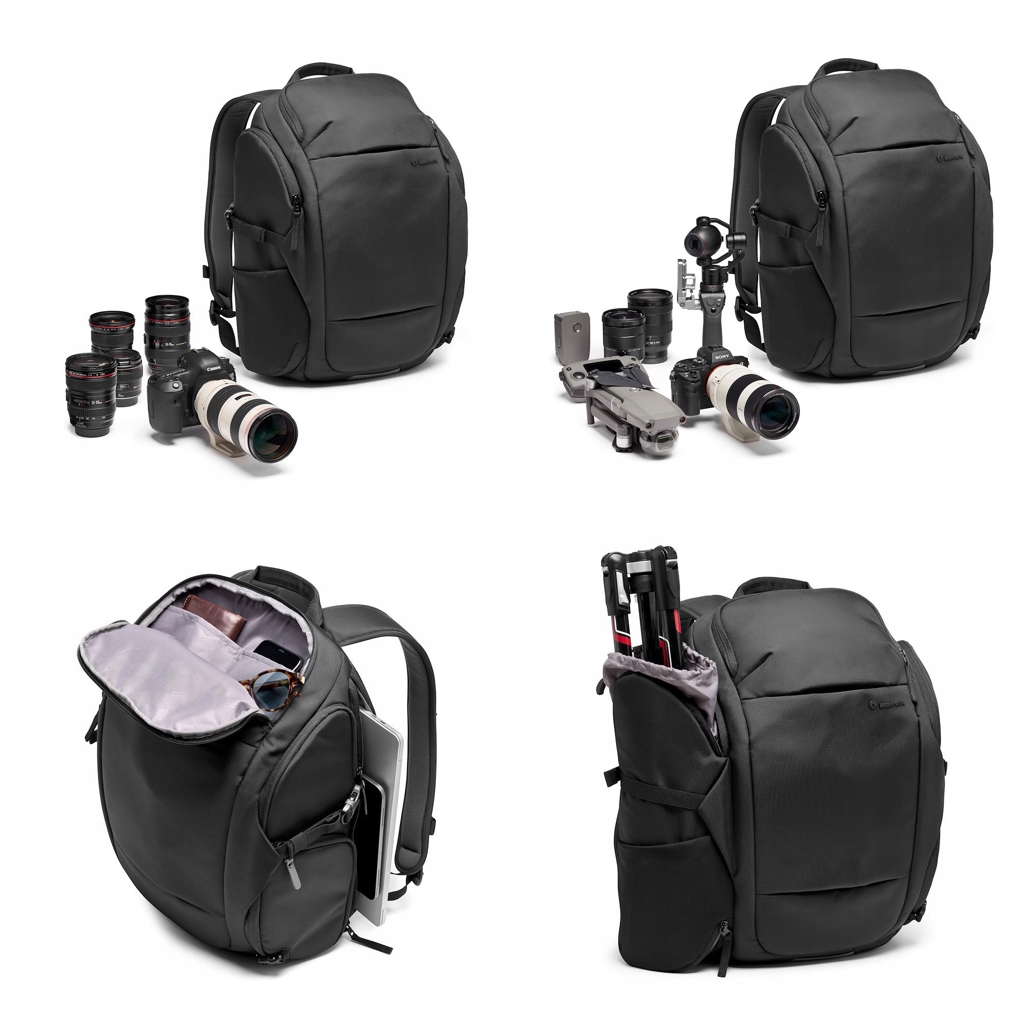 Advanced III Travel — уникальный рюкзак, способный вместить фотоаппарат размером с Canon 5D mark IV и еще 3 дополнительных объектива, небольшой ручной стабилизатор, дорожный штатив, аксессуары и личные вещи. Доступ ко всему содержимому возможен через боковую крышку. На нем находится меньший, скрывающий доступ к самой части камеры.
