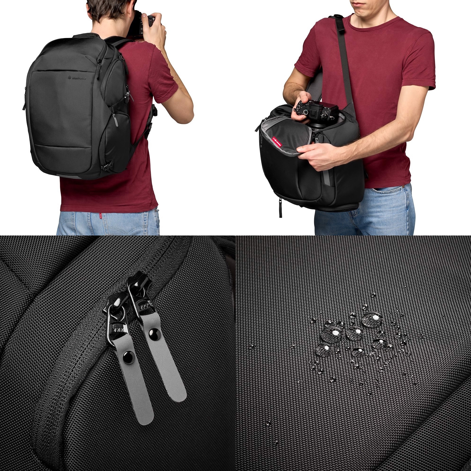 Вся коллекция Manfrotto Advanced III оснащена современной системой защиты M-Guard™. Эта система состоит из перегородок из специальной плотной пены EVA, которая прекрасно поглощает удары и в то же время может быть тоньше, чем используемые до сих пор решения. Особая форма перегородок позволяет их складывать, благодаря чему вы сможете лучше использовать пространство внутри сумки.
