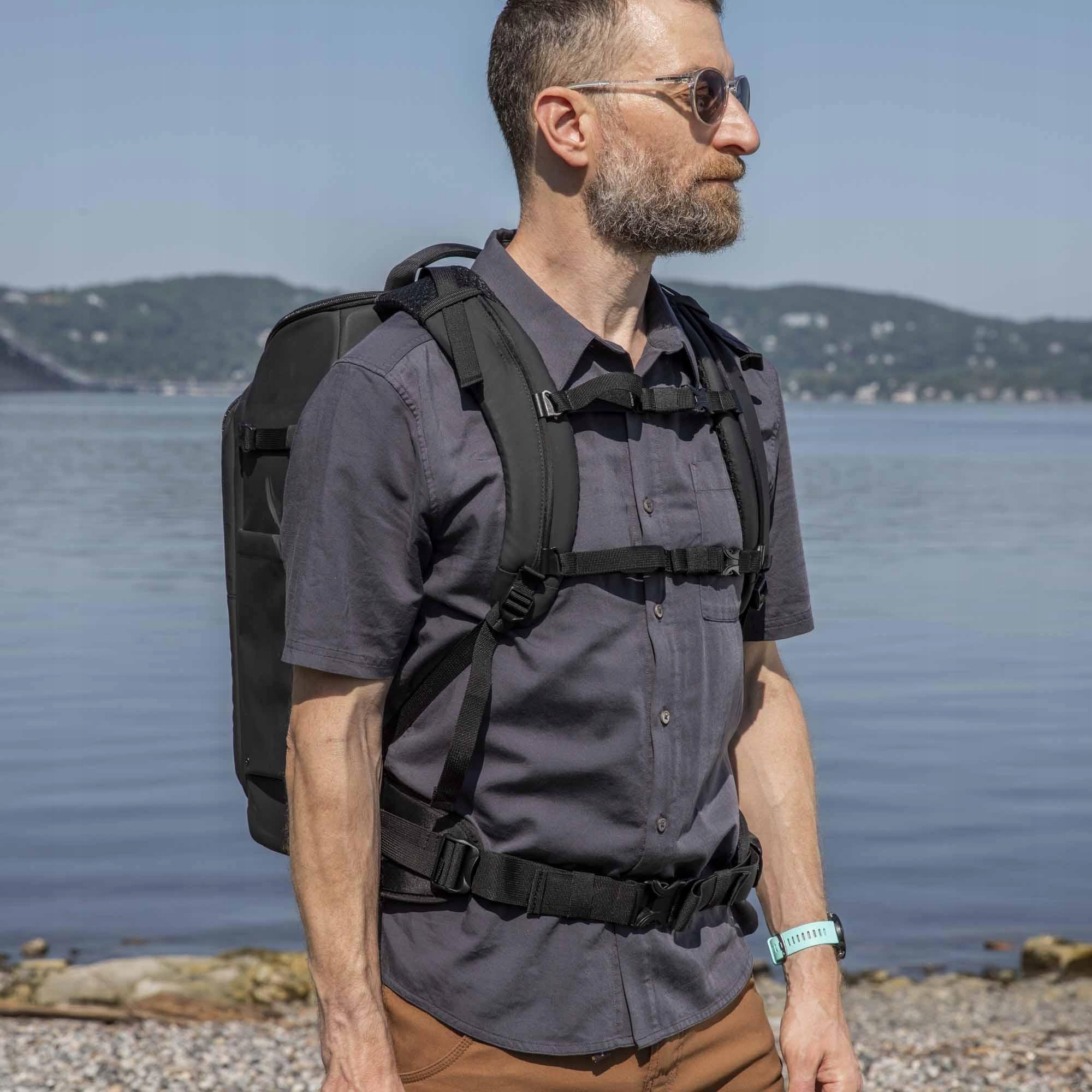 Рюкзак имеет 3-х точечный доступ к основному отделению. Доступ сбоку позволяет быстро снять камеру, не снимая рюкзак. Верхний доступ позволяет работать с камерой, не снимая рюкзак в небольшом пространстве, а открытие заднего клапана позволяет свободно использовать все основное отделение. Axis V2 — первый рюкзак для камеры со скрытым карманом, совместимым с Apple AirTag или Tile Bluetooth Tracker. Основные характеристики: Вместимость для фототехники/планшета — 1–2 беззеркальные или зеркальные камеры с 6–8 объективами, включая объектив 500 мм 4.0, и ноутбук с диагональю до 16 дюймов (40 см). В нем также находится дрон DJI Mavic и другие компактные дроны. Спецификация: Вес: 2,1 кг Внешние размеры: 32x52x22 см Внутренние размеры: 29x47x15 см Размеры отделения для ноутбука: 25x37x2 см