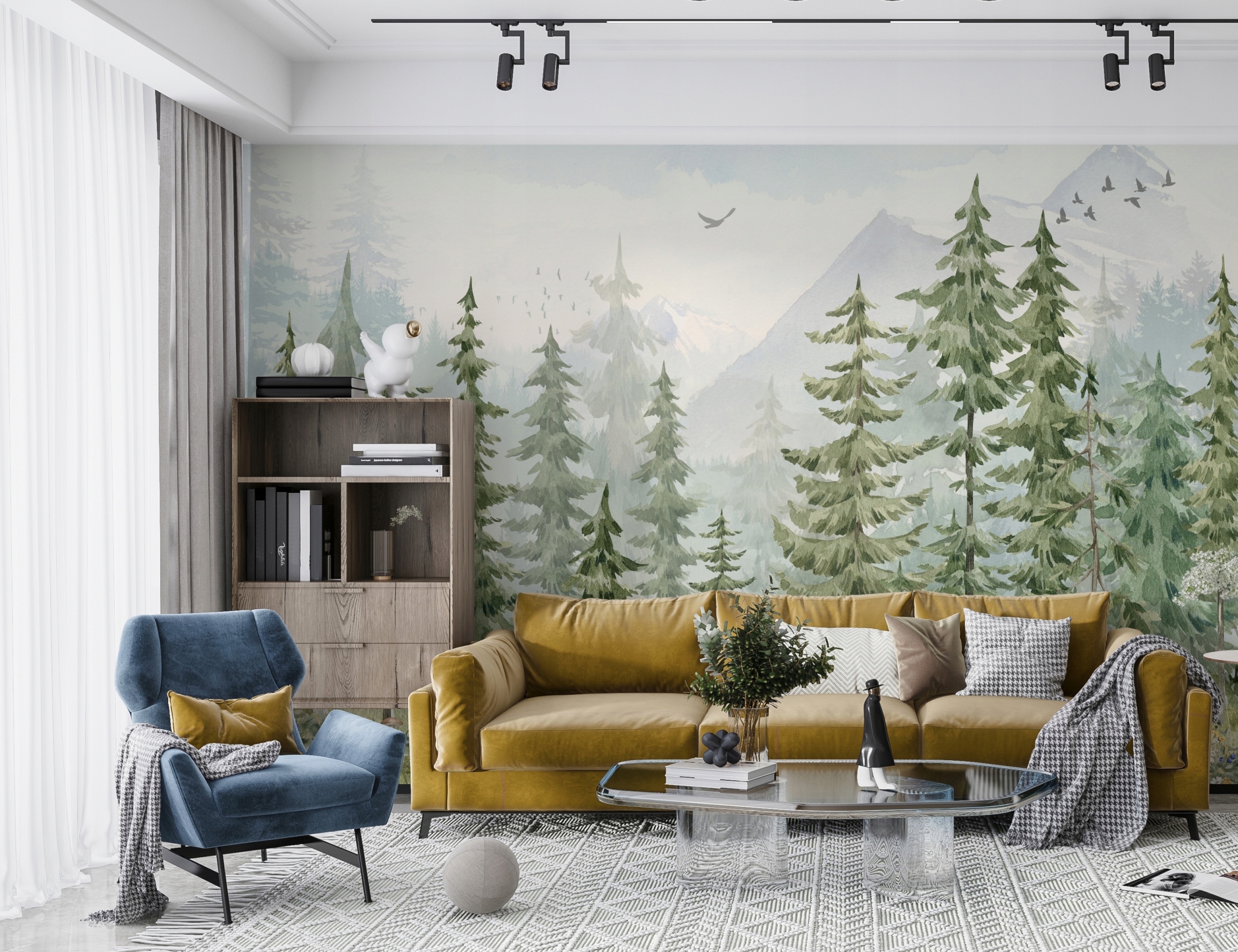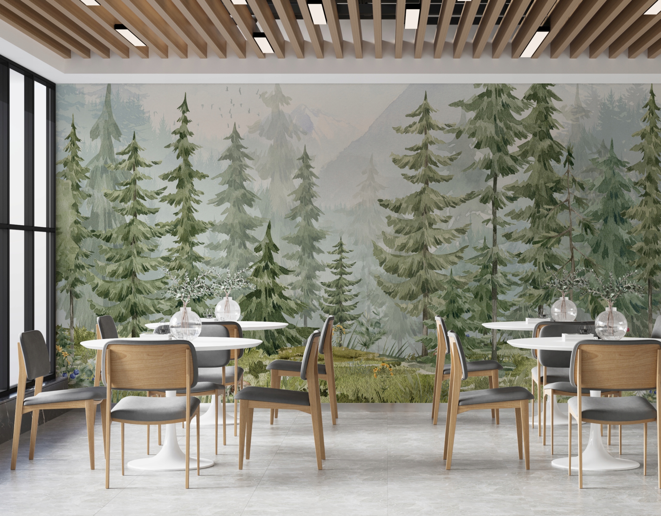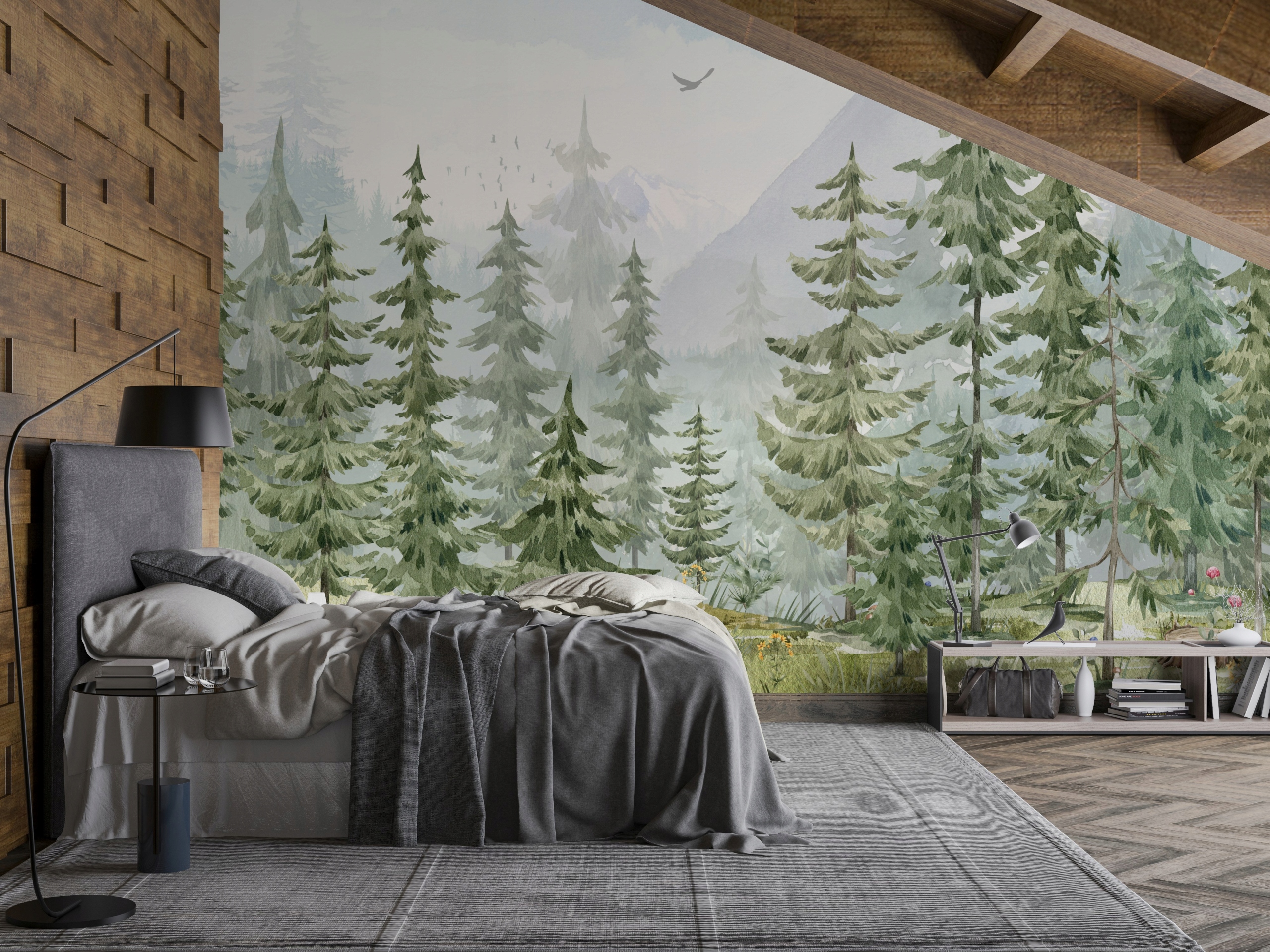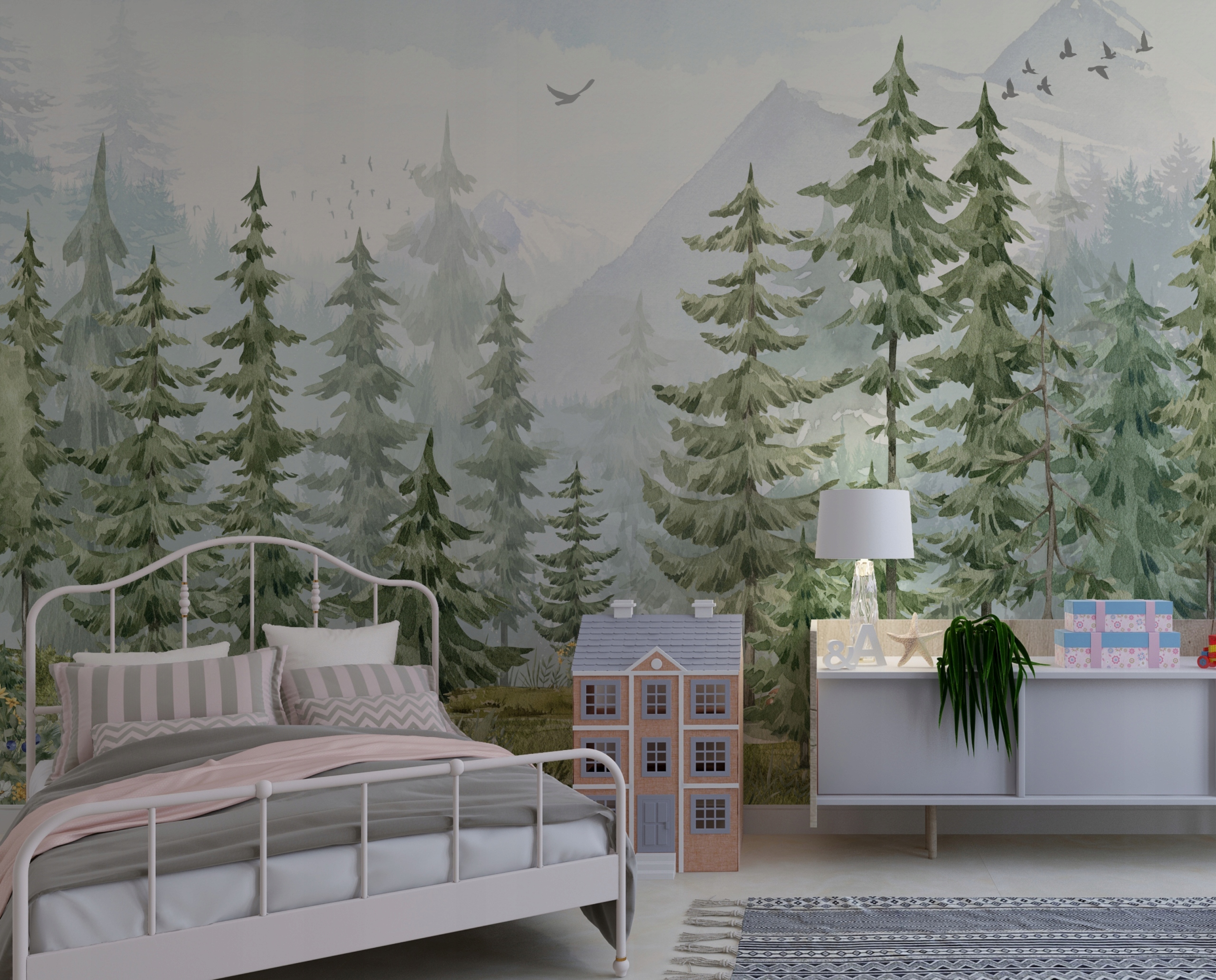 Фотошпалери дитячі, лісові шпалери, лісові гори, дерева, під замовлення, клей безкоштовно