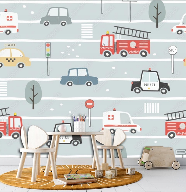 ФОТОШПАЛЕРИ для дитячої кімнати для дитини Машинки