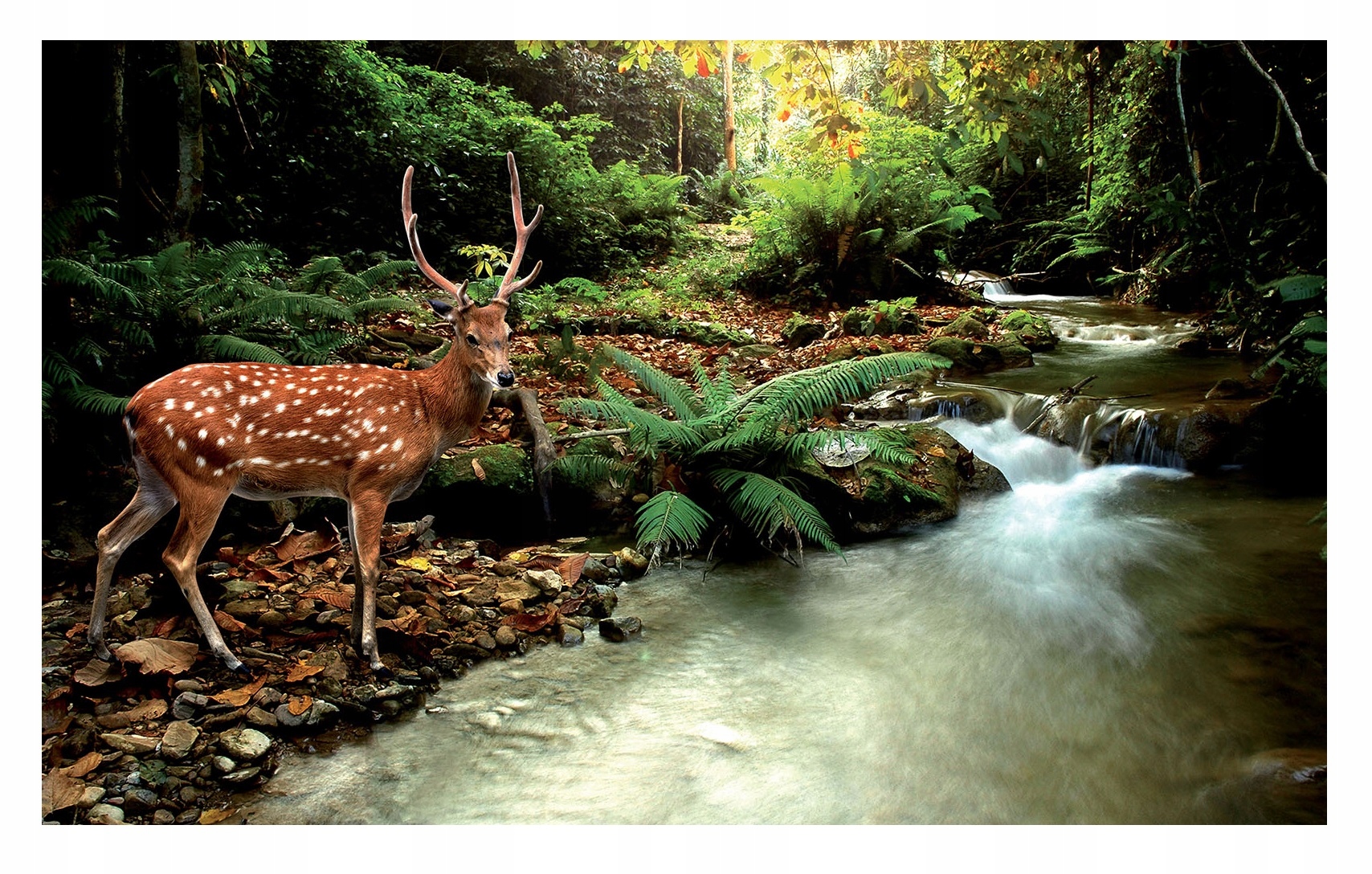 ФОТО ОБОИ ОЛЕНИ ЛЕС ДЕРЕВЬЯ ПРИРОДА РЕКА ЖИВОТНЫЕ ОБОИ ГОСТИНАЯ 368x254