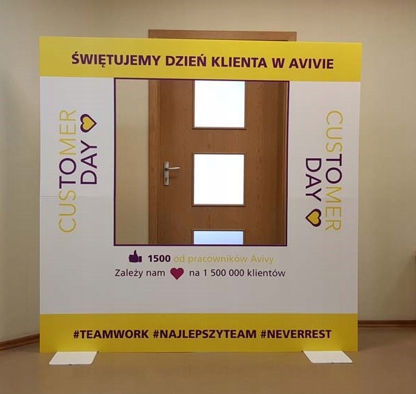 Рекламная стена с фоторамкой и печатью для внутреннего показа