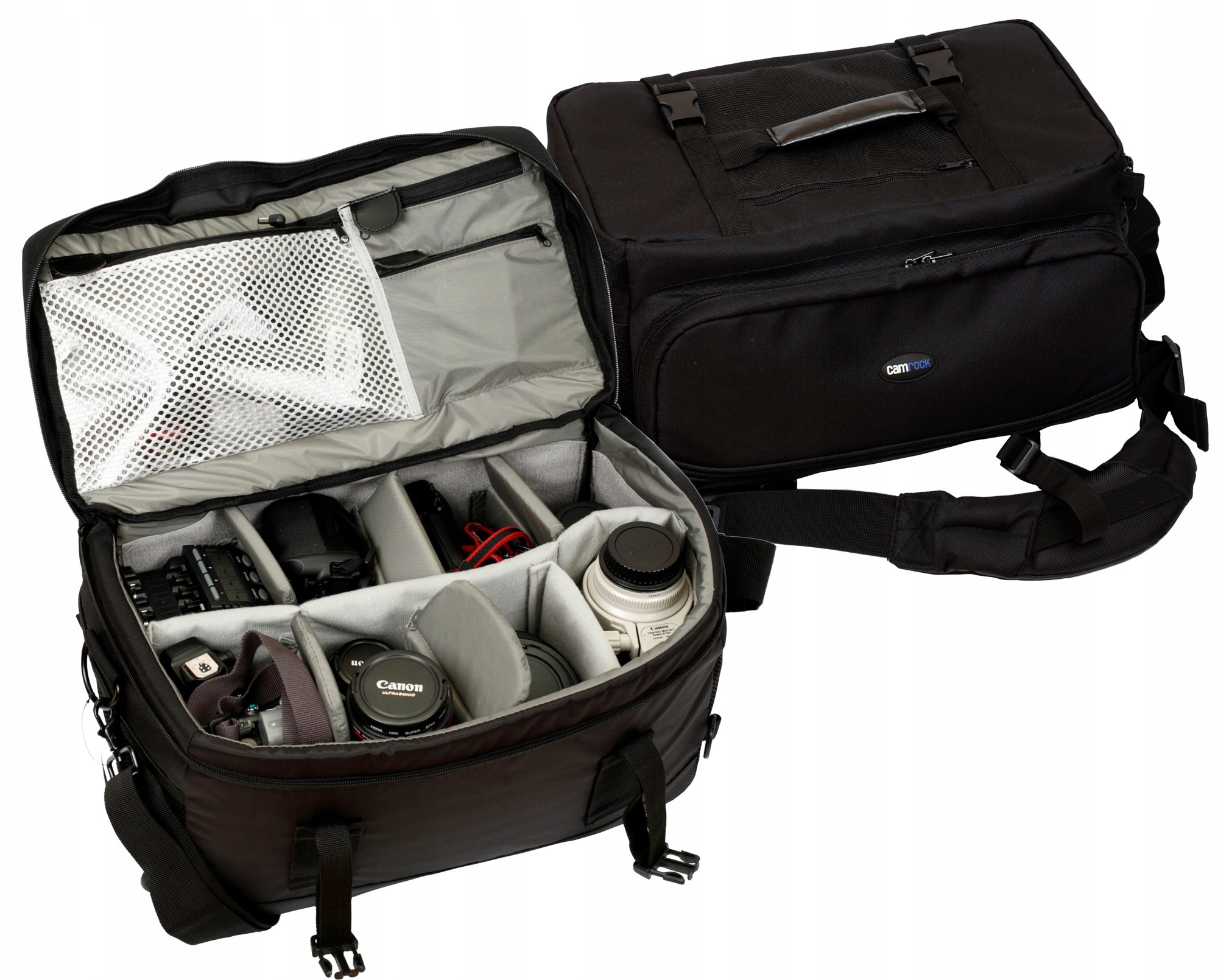 Camrock Tank X60 — самая большая сумка для профессионалов и любителей, которые хотят носить с собой количество снаряжения выше среднего. Большая вместительность сочетается с функциональностью и комфортом использования. Изготовленный из лучших материалов, он гарантирует высокую долговечность и безопасность перевозимого оборудования. Сумка имеет крепление для штатива и выдвижной чехол от дождя.