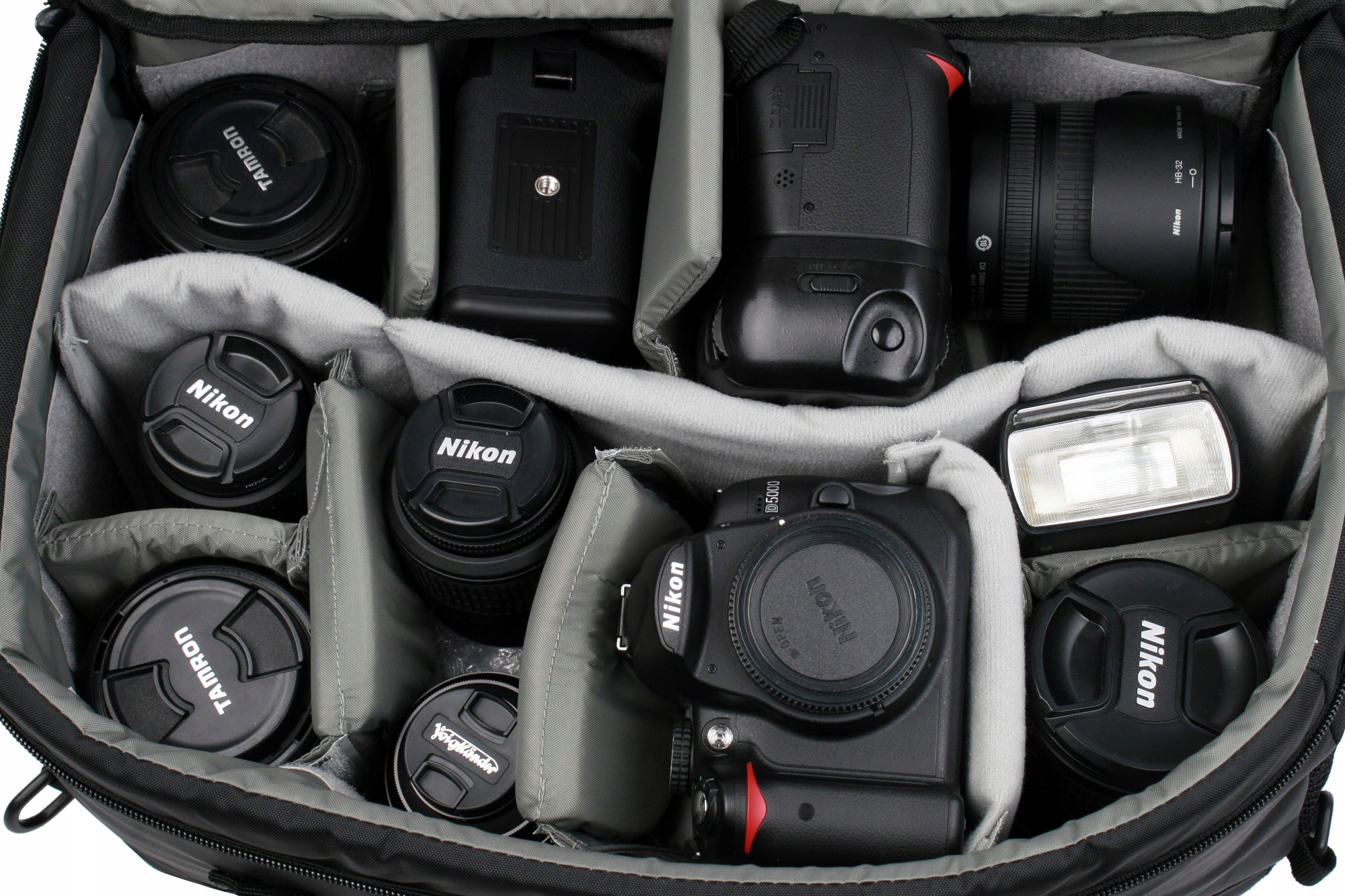 <ул>Основное отделение благодаря регулируемым перегородкам можно свободно конфигурировать и разделить на 14 частей. Любая конфигурация обеспечивает оптимальное использование пространства и идеальную адаптацию к оборудованию и потребностям пользователя. В сумке поместятся 2 корпуса, 8 объективов, вспышка и ряд других аксессуаров, таких как: компактная камера, видеокамера, фильтры, зарядные устройства, пульты дистанционного управления, аккумуляторы, ридеры и т. д.