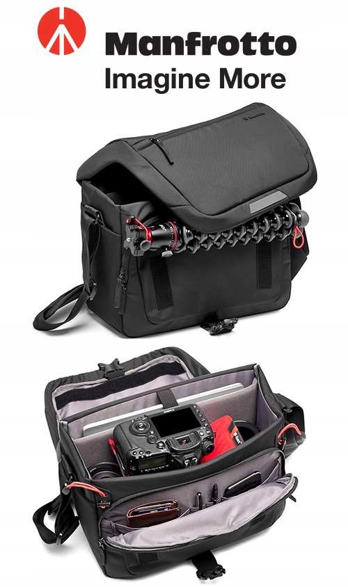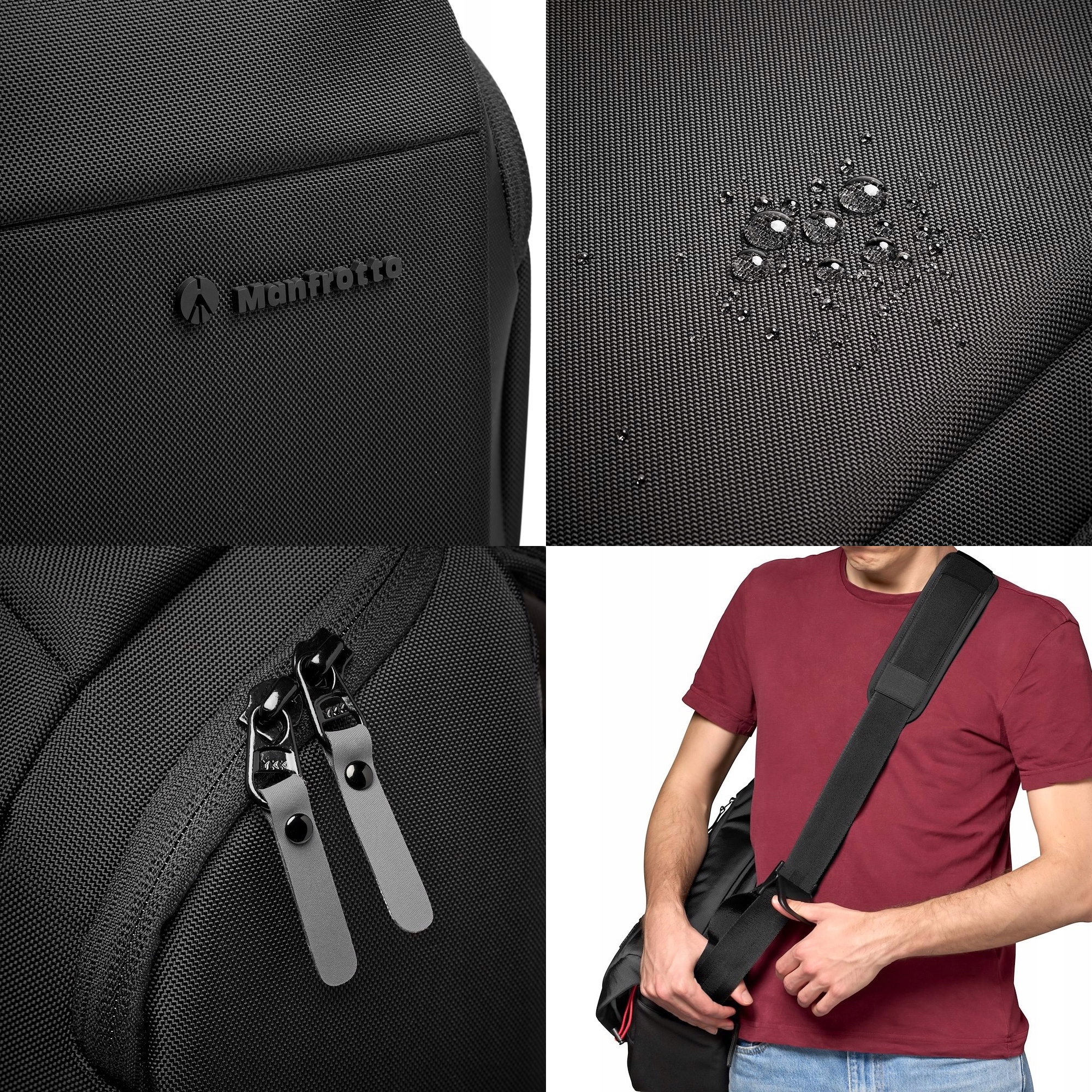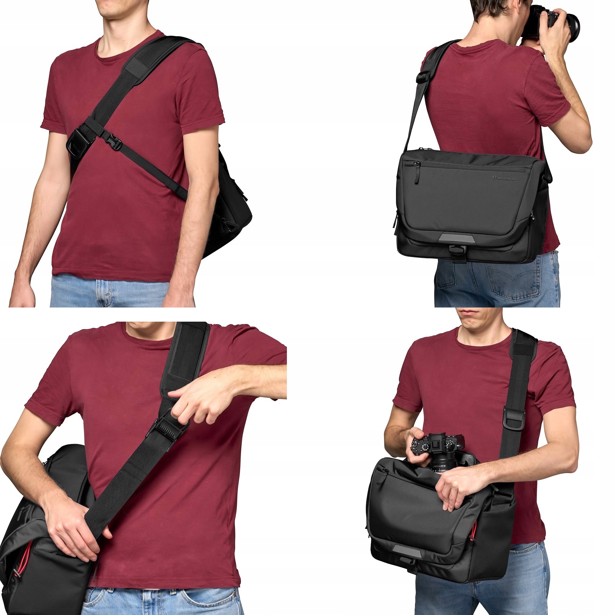 Manfrotto Advanced III Messenger M является примером комфорта и удобства во время быстрого сеанса. Он будет размещать большое количество оборудования для каждого сеанса. Съемные, мягкие перегородки позволяют легко вставить безразличенную камеру или цифровую зеркала. Вы можете смело положить камеру с прикрепленным объективом 70-200 мм f/2.8 и двумя дополнительными объективами. Вместо этого вы можете использовать интерьер для передачи набора DJI Mavic Pro 2. Эта система представляет собой перегородки из специальной, плотной пены EVA, которая идеально поглощает удары, и в то же время может быть более тонким, чем используемые до сих пор растворы. Специальная форма перегородков позволяет потерять, поэтому вы можете лучше использовать место внутри сумки. Вы можете получить полный и удобный доступ, используя липучку и зажимную крепеж. На передней части сумки вы найдете большой карман с множеством мест для хранения многих аксессуаров. Messenger M также имеет 14-дюймовый карман ноутбука. Регулируемый плечевой ремень обеспечивает комфорт, а дополнительный стабилизирующий ремешок позволяет легко двигаться пешком или на велосипеде, сохраняя стабильную сумку в теле