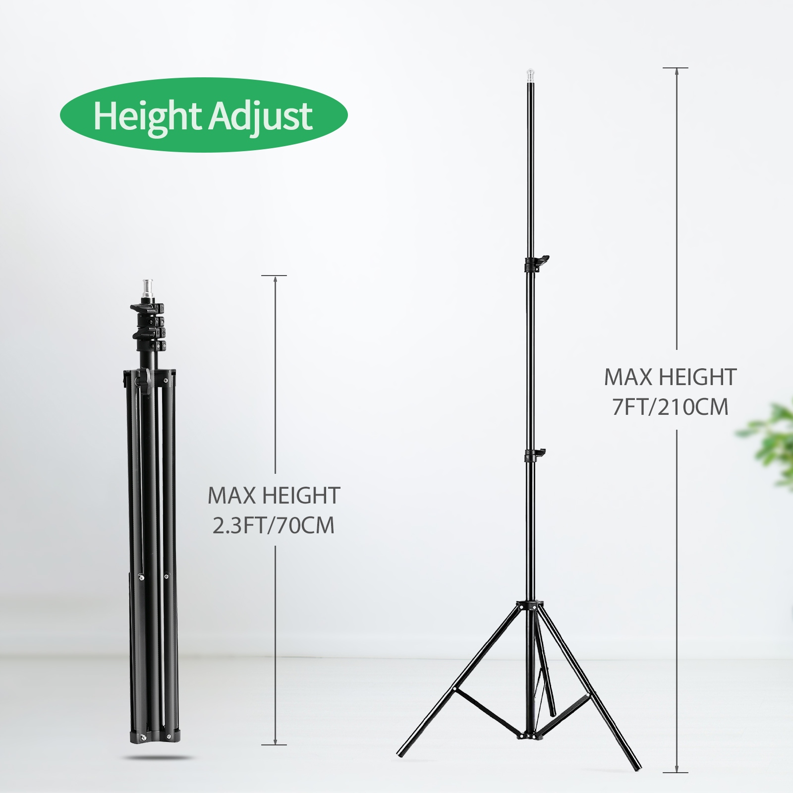 6. Комплект подставок для фона размером 2 × 3 метра, максимальная высота подставки может достигать 200 см, высота в сложенном виде составляет всего 68 см.