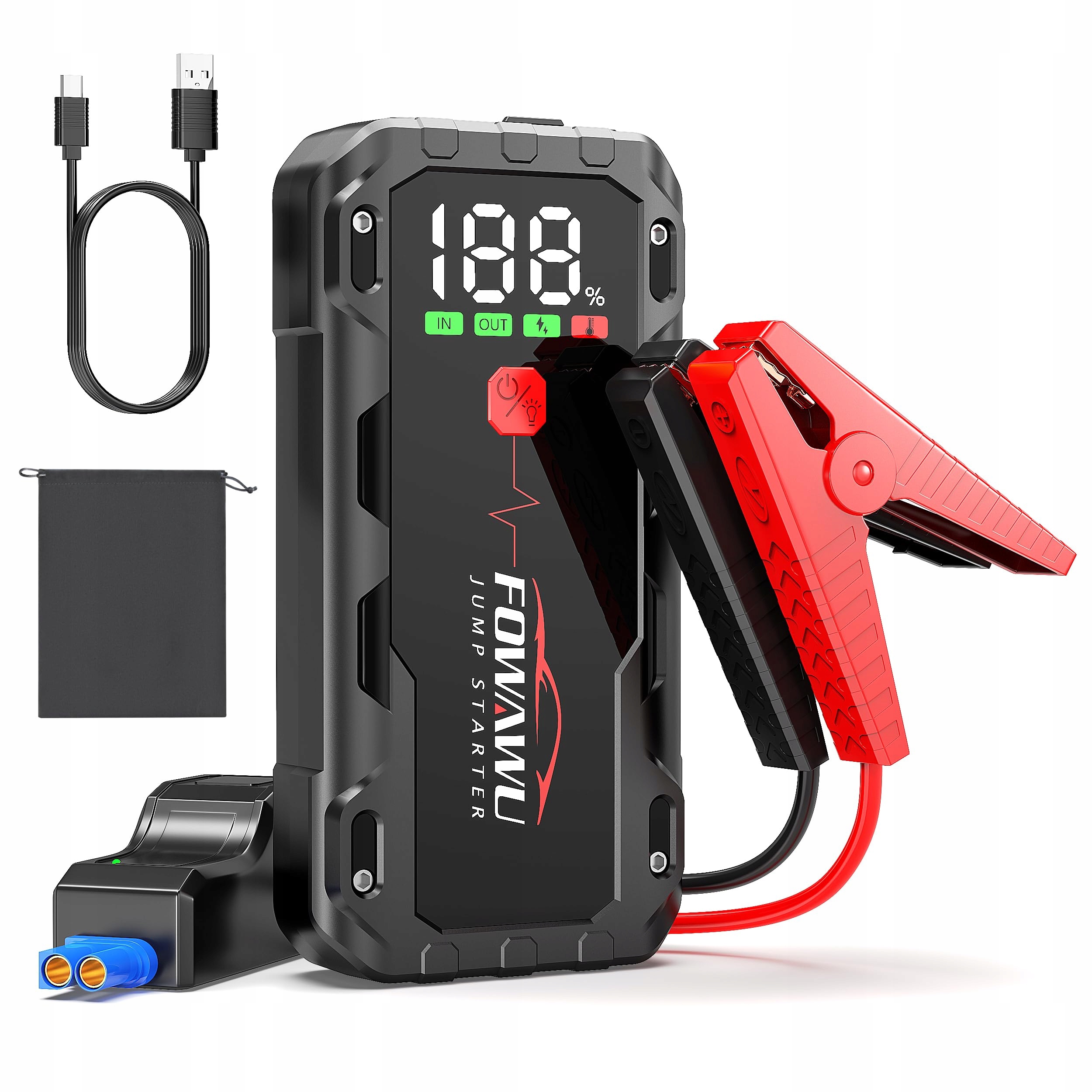 Стартер FOWAWU 6000A, 22800 мАч (до 10 л бензина / 8 л дизеля) Автомобильный стартер со светодиодным фонариком, большим дисплеем, прыжковыми зажимами, усилителем автомобильного аккумулятора для газонокосилки мотоцикла-внедорожника