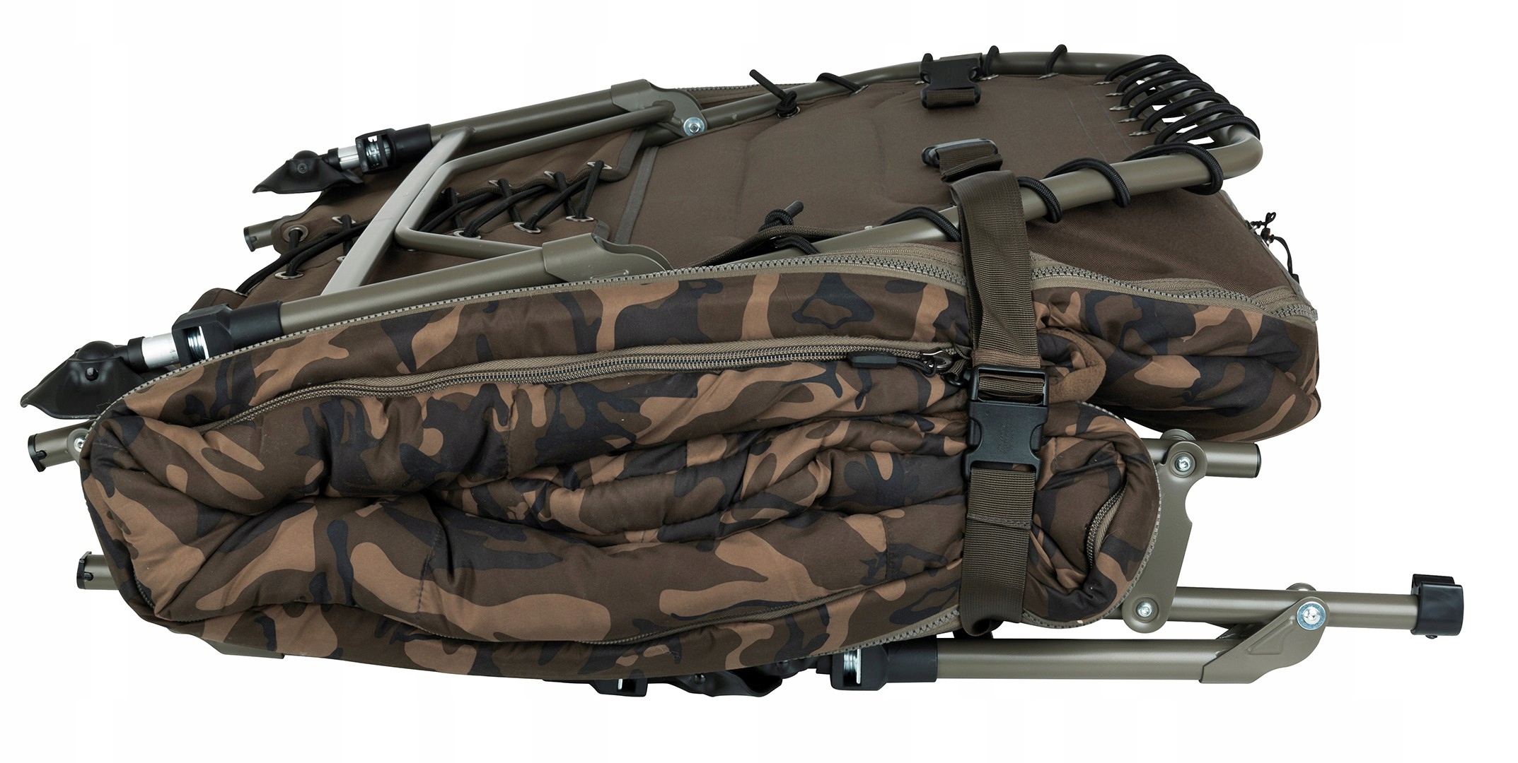 Система была разработана на основе очень популярной кровати R2 Camo. Он содержит готовый, съемный 4-сеанс камуфляжного спального мешка.