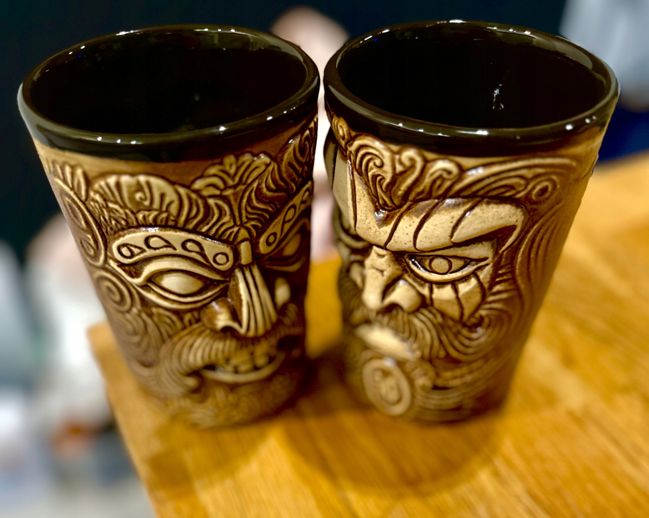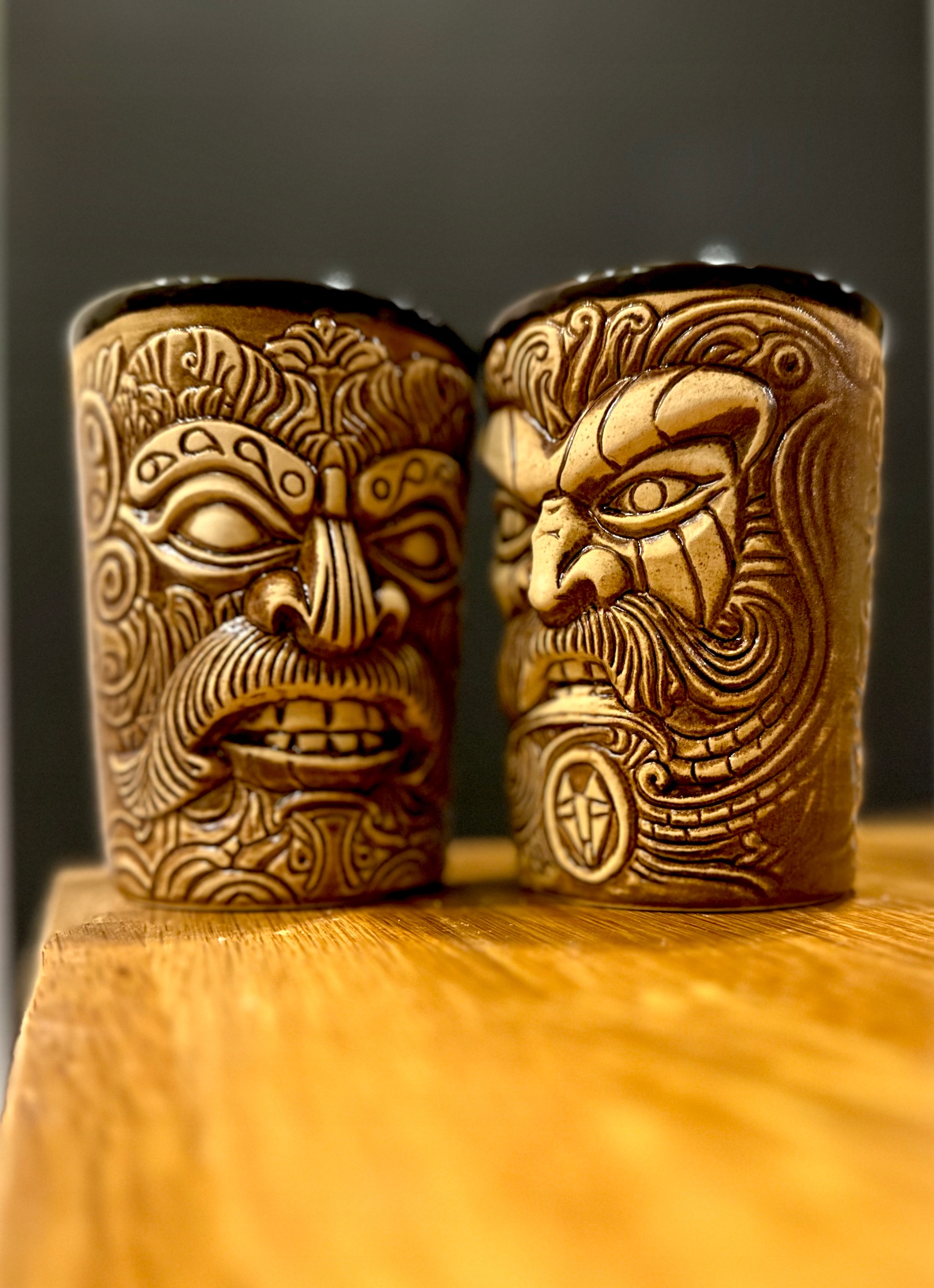 - Кружки тики часто представляют собой декоративные сосуды, уходящие корнями в полинезийскую культуру. Для них характерны выразительные и красочные узоры и мотивы, часто изображающие богов, духов или символы, связанные с мифологией. Эти кружки популярны в барах и ресторанах для подачи экзотических напитков, особенно связанных с кухней и культурой тики.