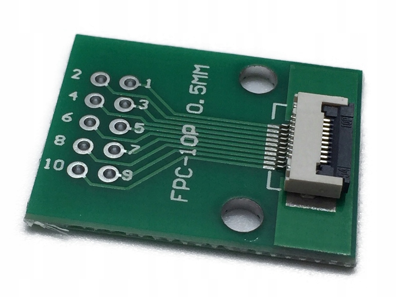 Адаптер, позволяющий подключить 10-контактную полоску FPC/FFC (шаг 0,5 мм) к стандартной печатной плате. Идеально подходит для проектов DIY, ремонта и прототипирования.