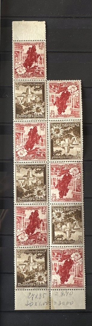 Фрагмент листа Deutsches Reich Zusammendrucke с 5xK34**
