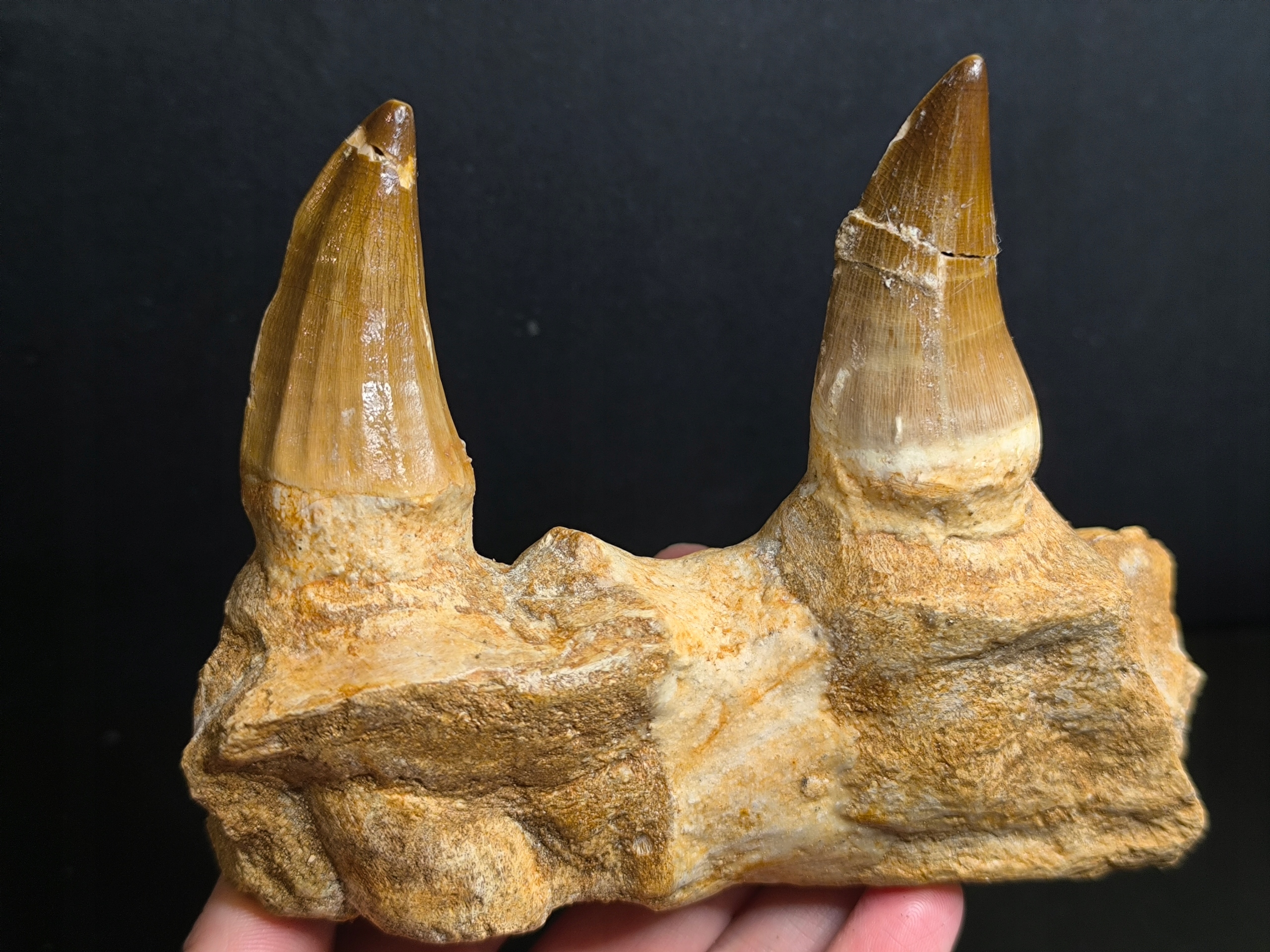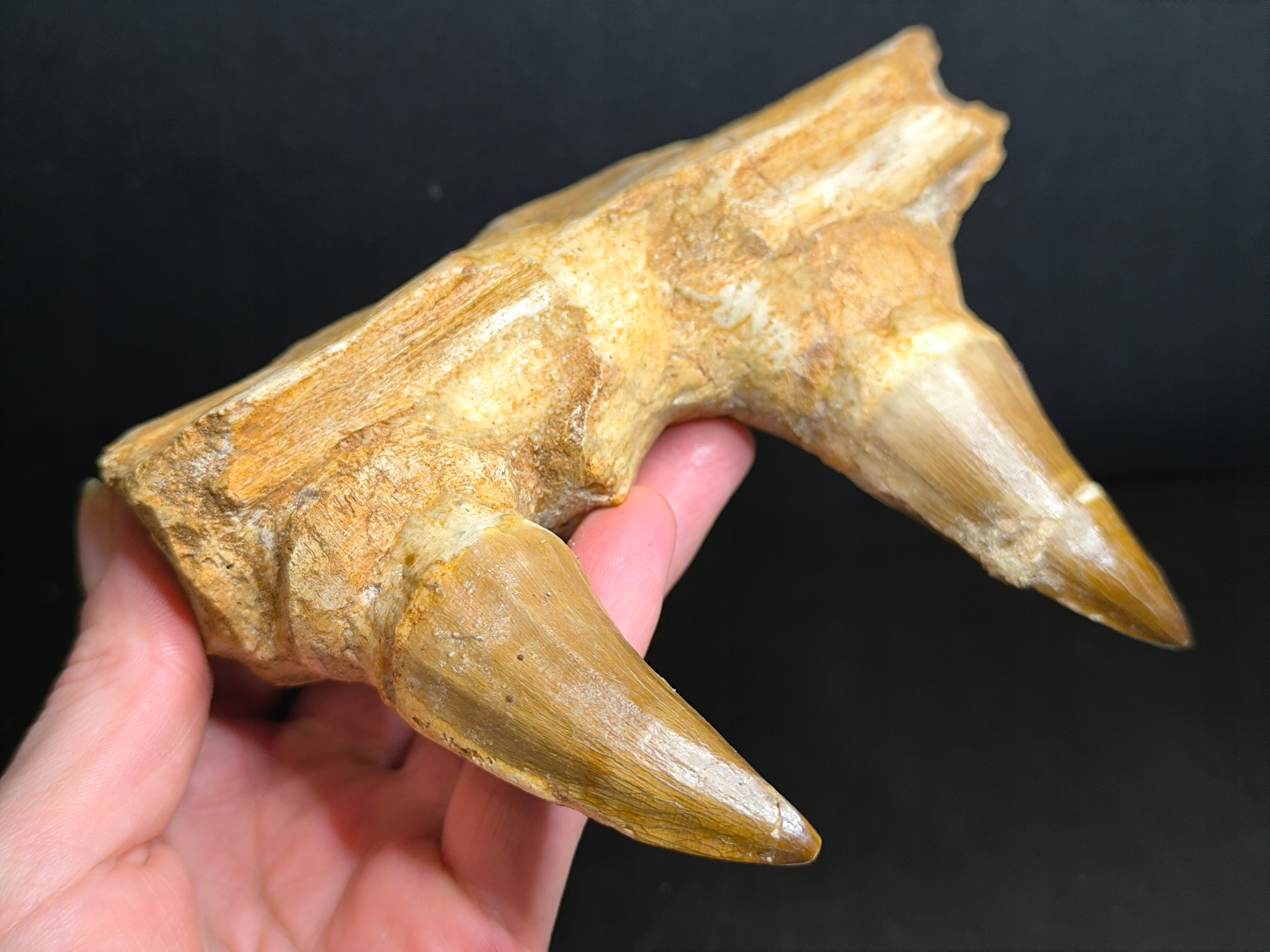 Предмет продажи — фрагмент челюсти мозазавра с зубами.