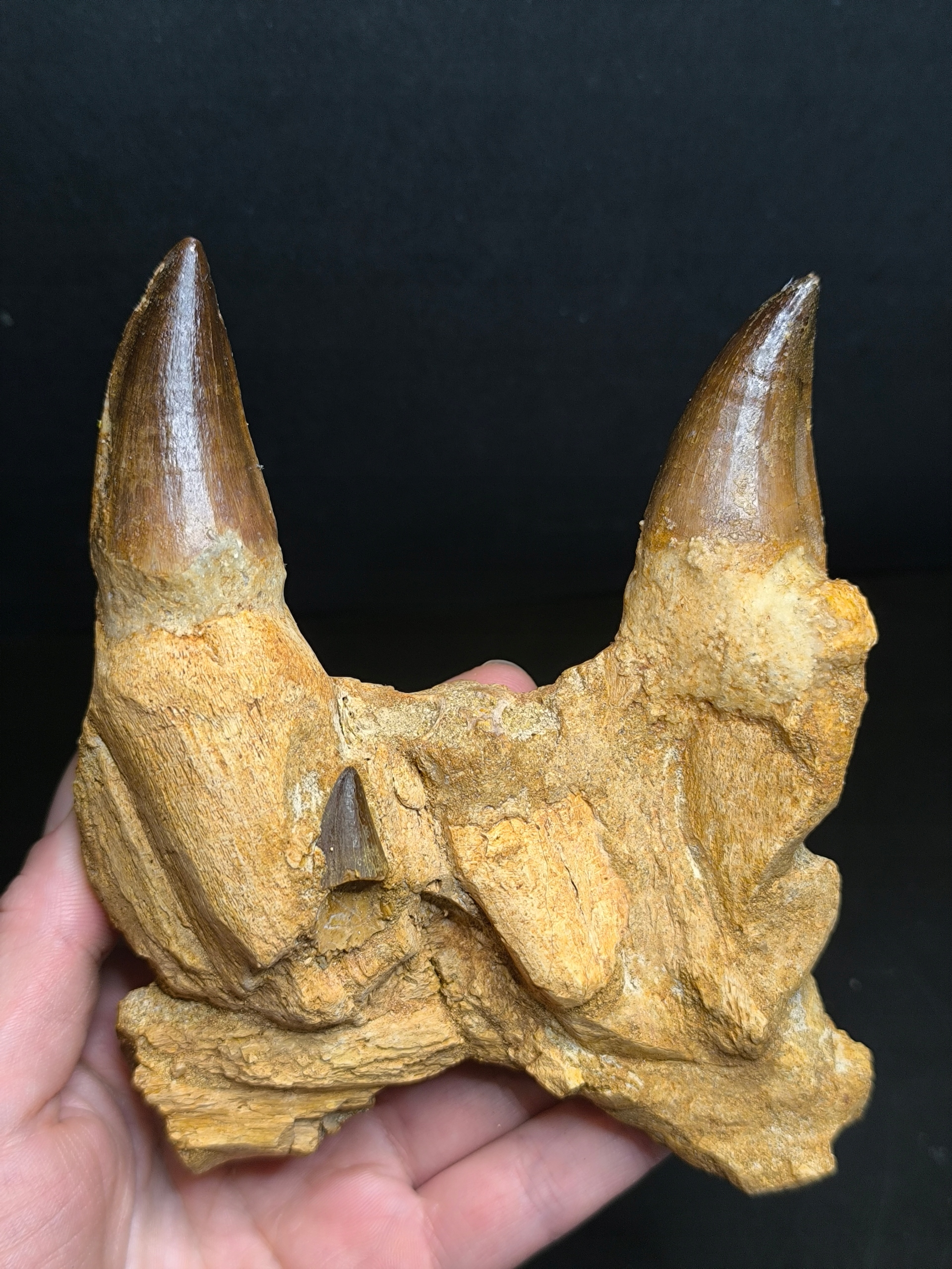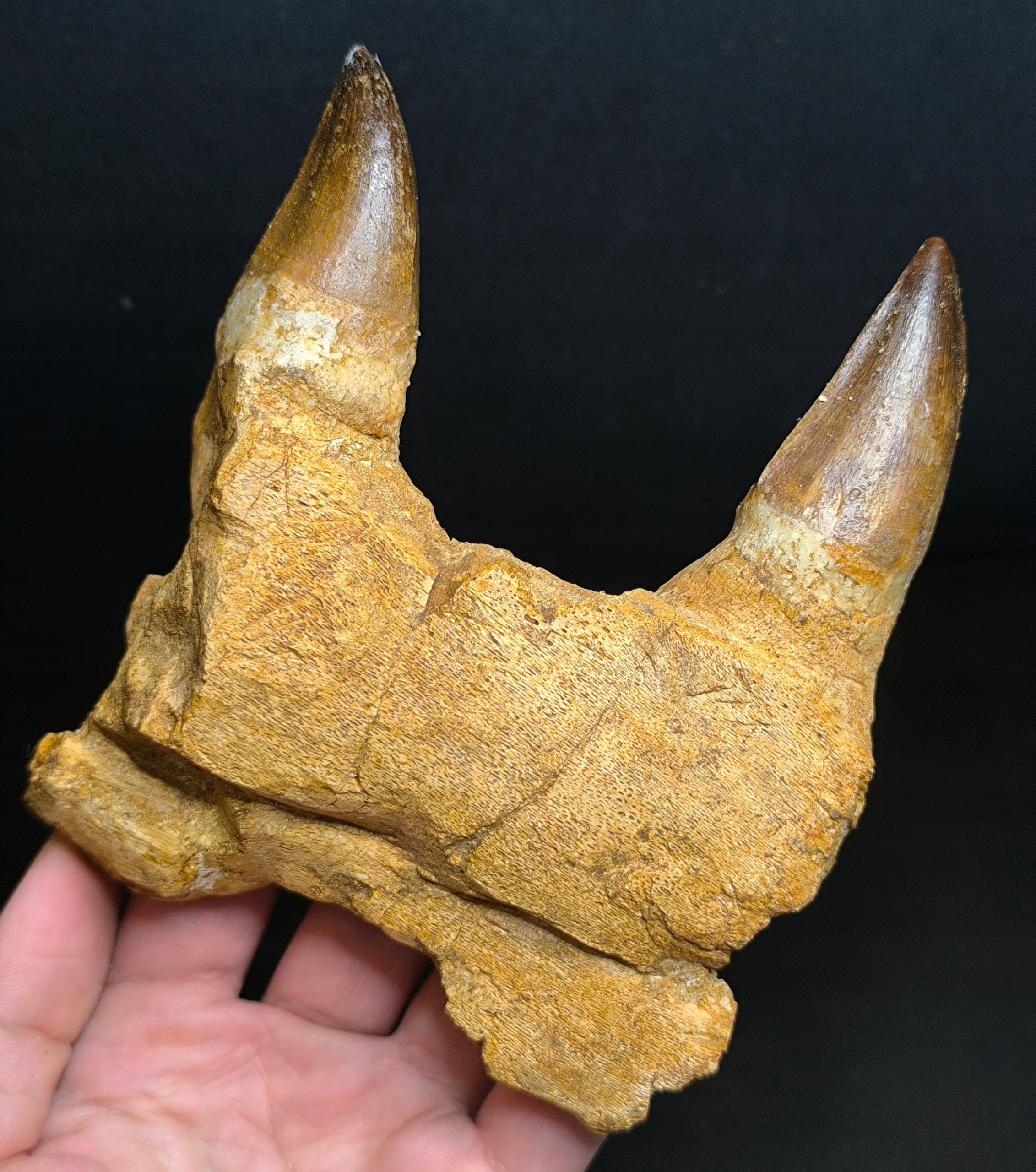 Предмет продажи — фрагмент челюсти мозазавра с зубами.