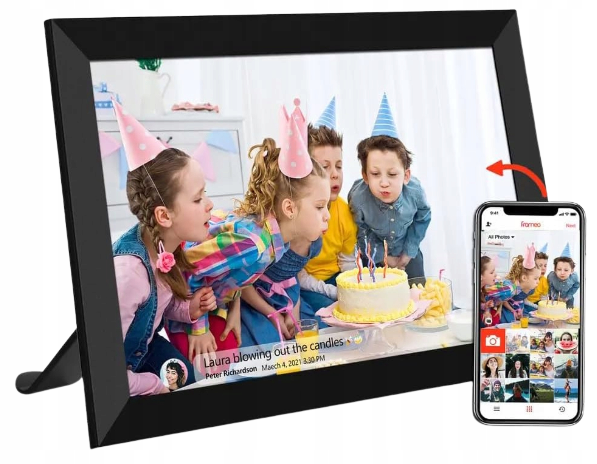 Frameo 10,1-дюймова Cyfrowa Ramka Wifi na Zdjęcia 64GB пам'яті, з додатком