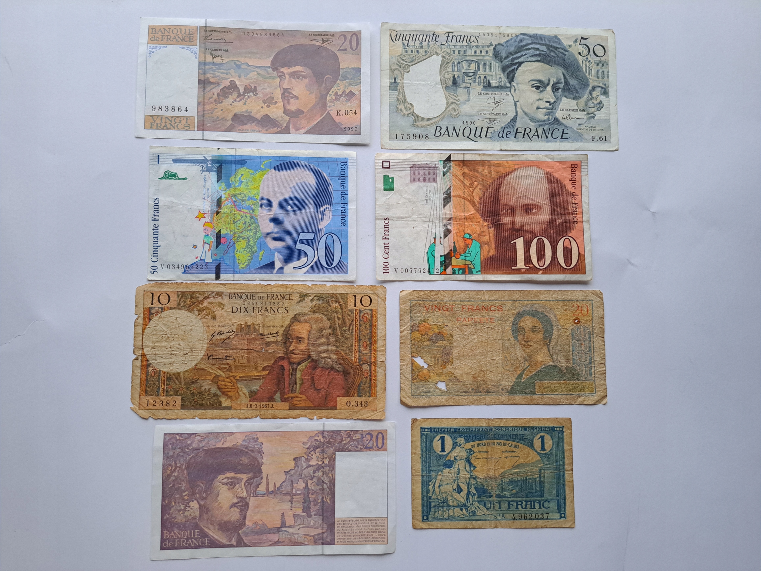 НАБОР «Франция» - Различные номиналы, винтажи, типы - 8 штук.