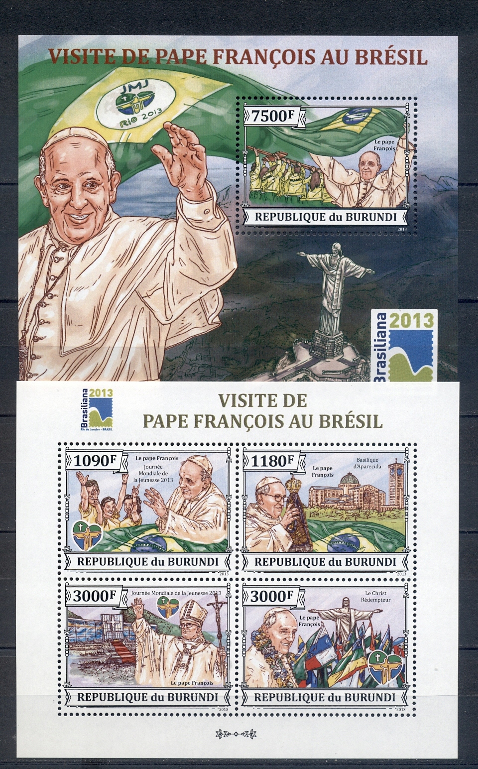 FRANCISZEK-WIZ.BRAZ. REP.BURUNDI.Mi Bl+ark.A**2013