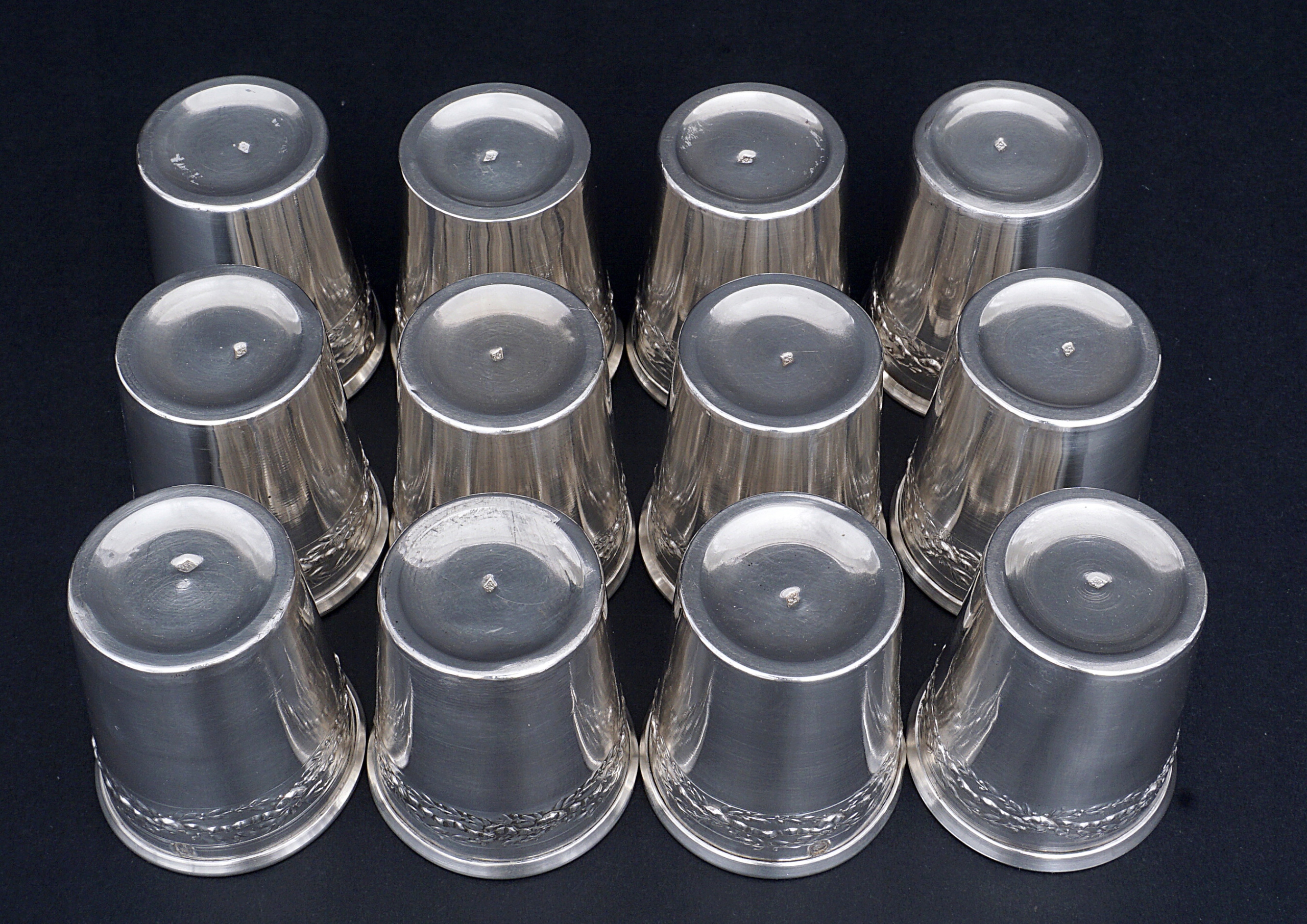 12 рюмок для водки или ликёра из серебра 950 пробы.