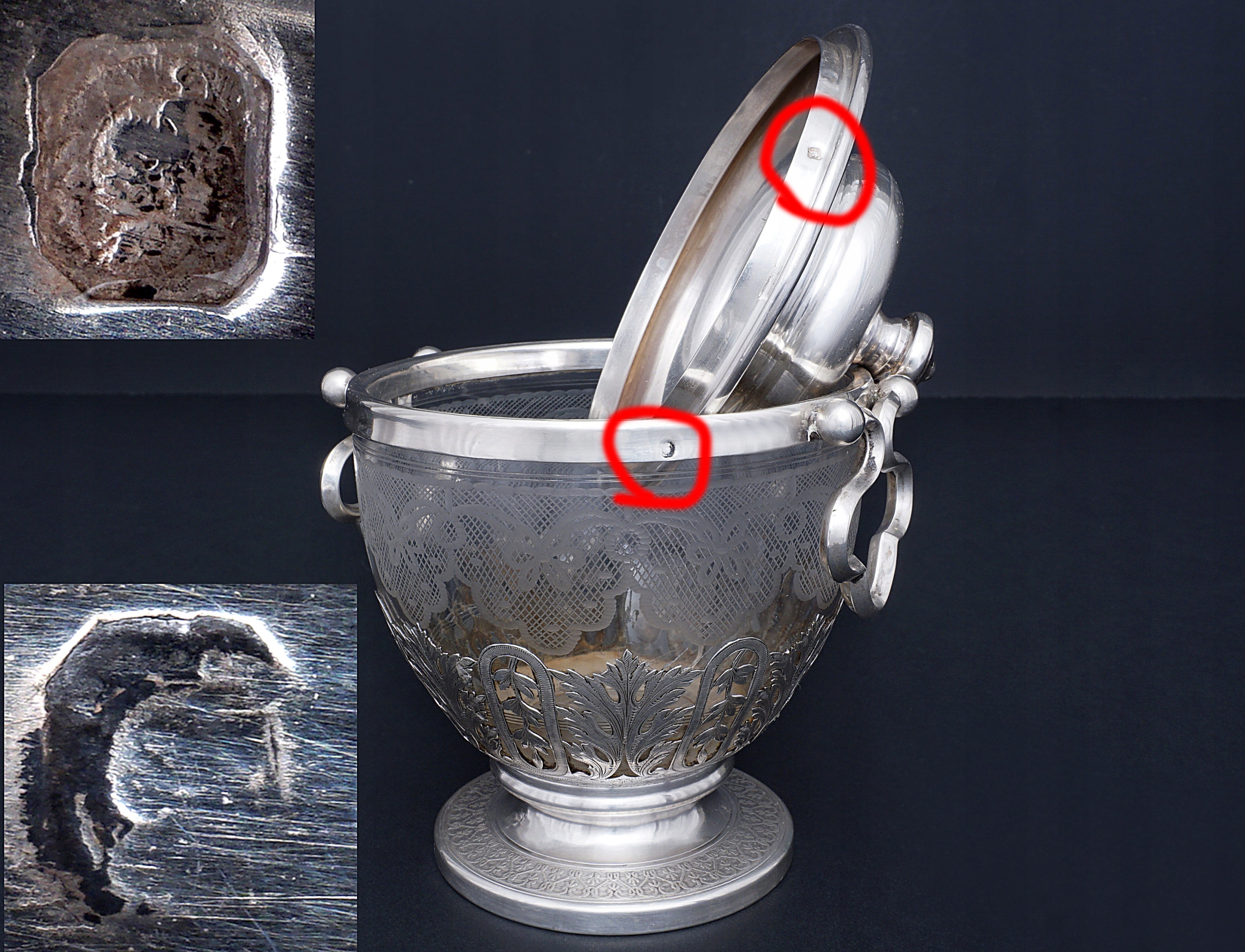 Фурнитура и крышка выполнены из серебра 950 пробы.