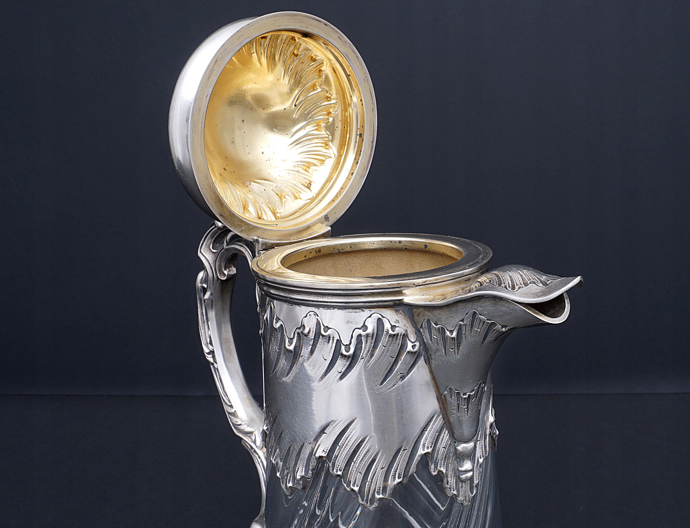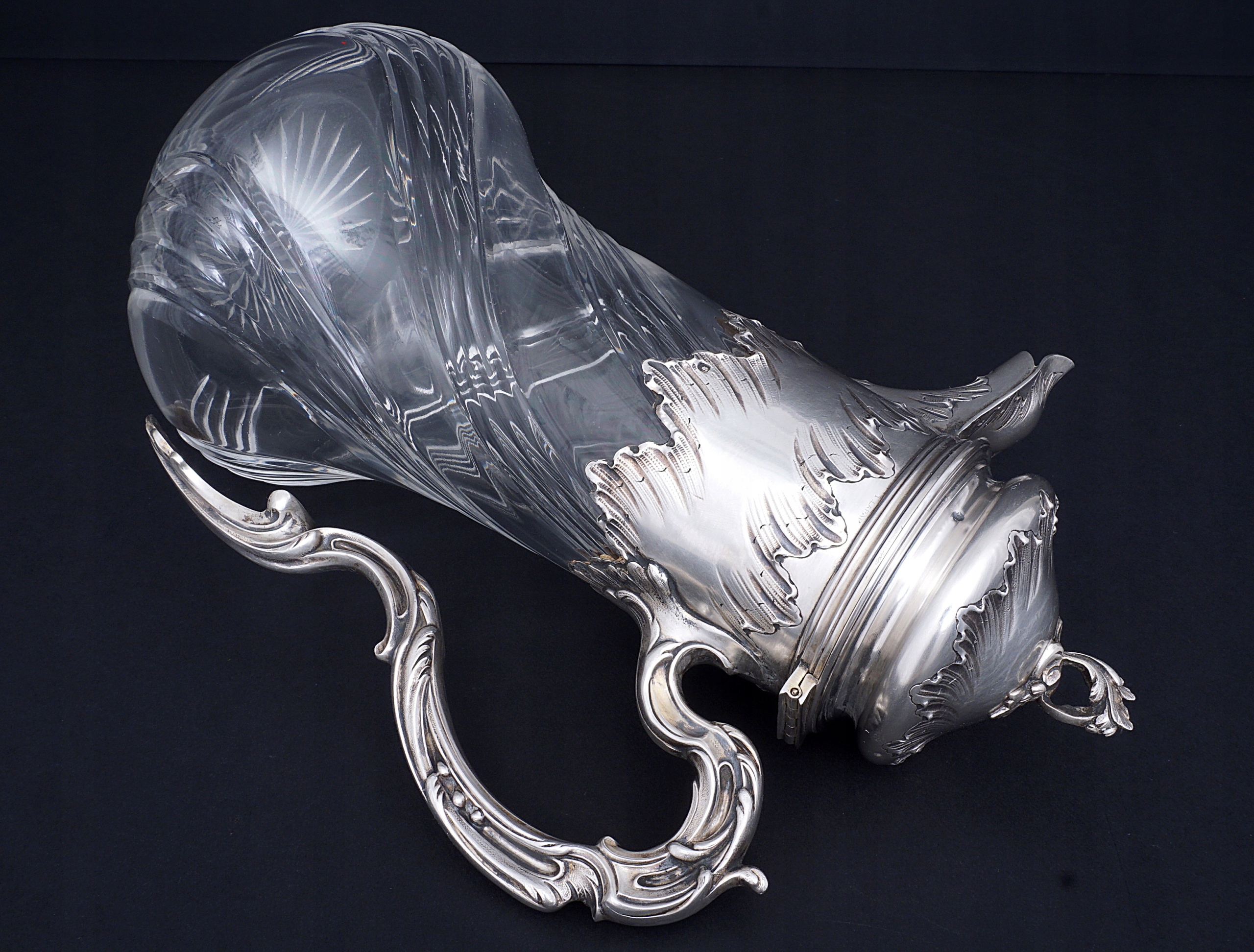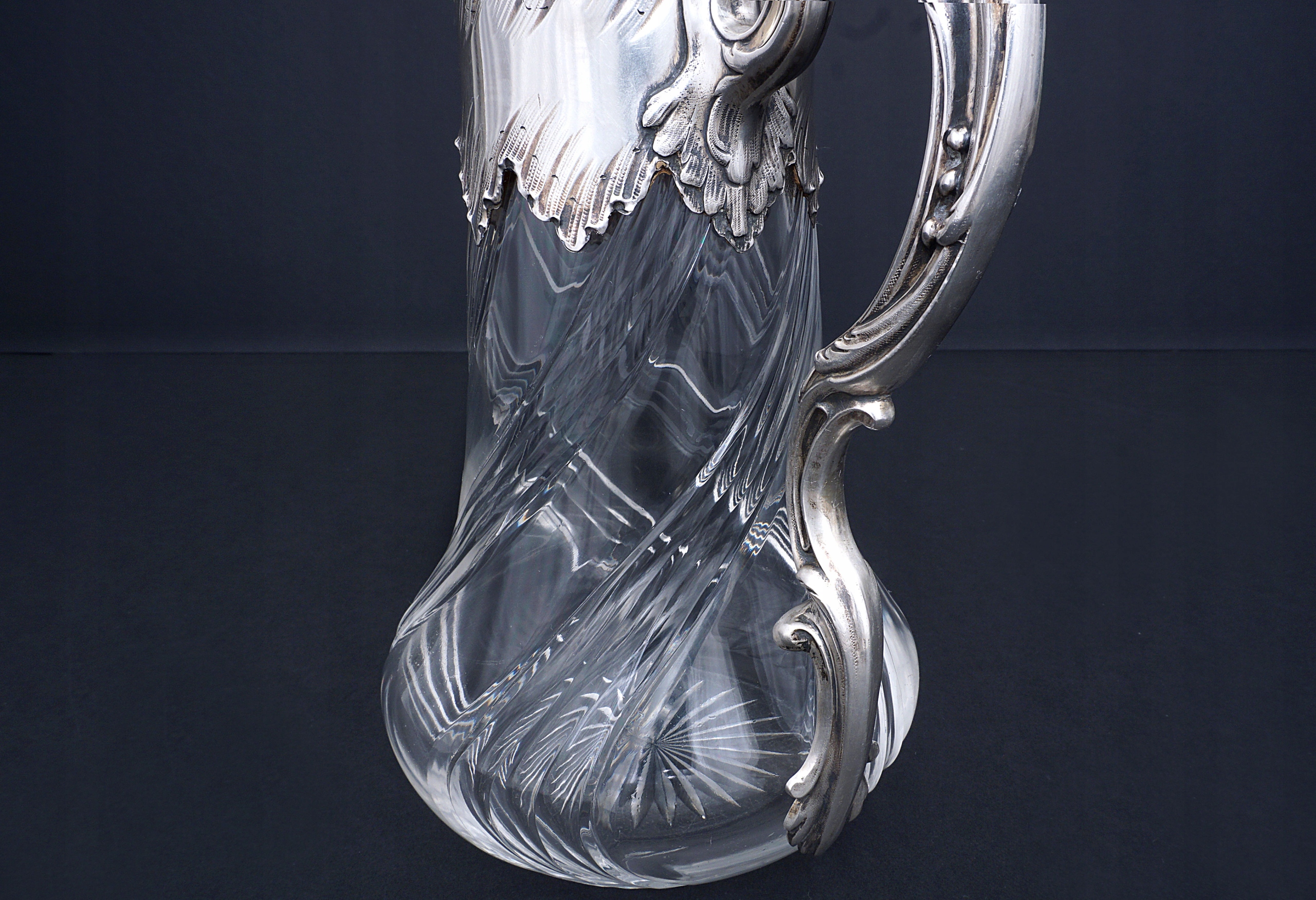 Хрустальный кувшин для вина, украшенный серебром 950/1000 пробы.