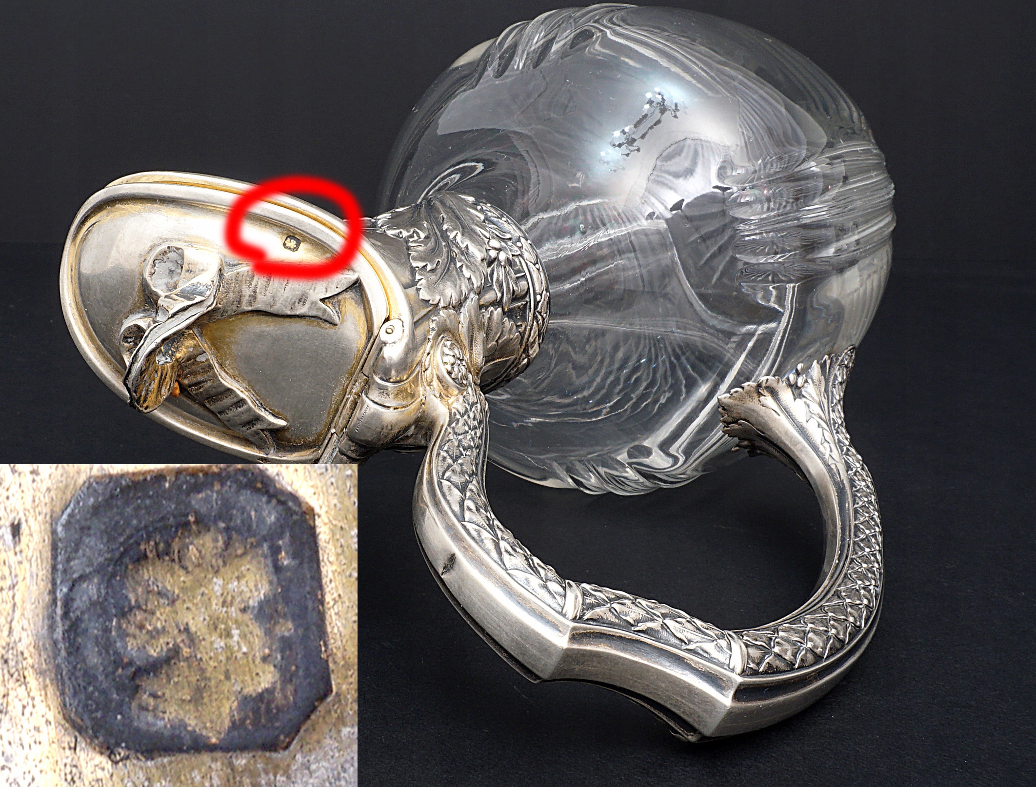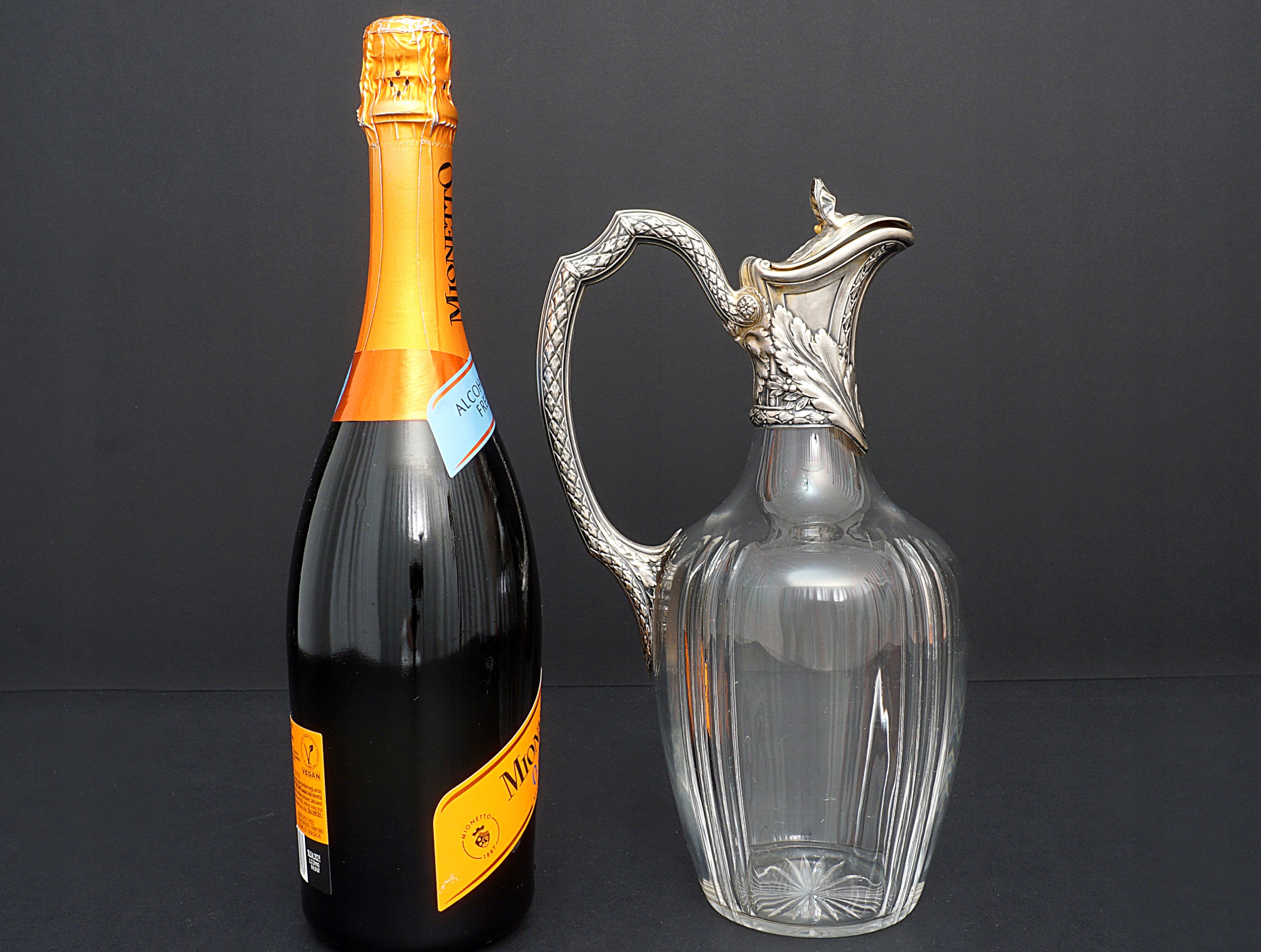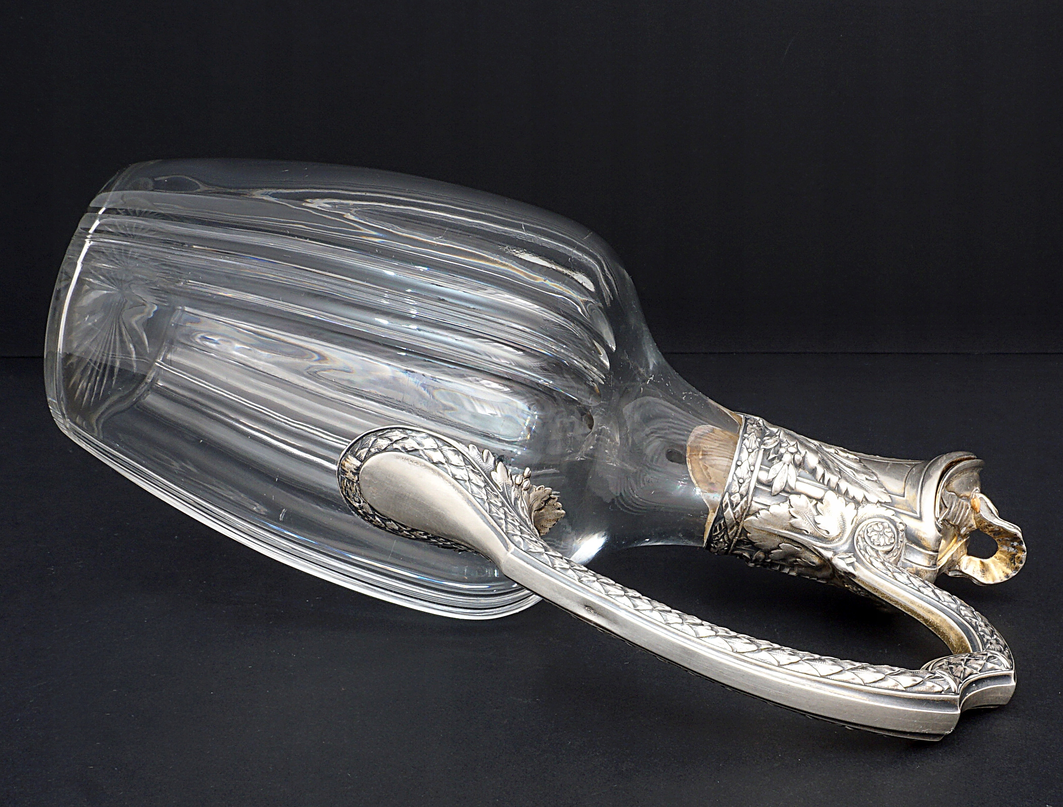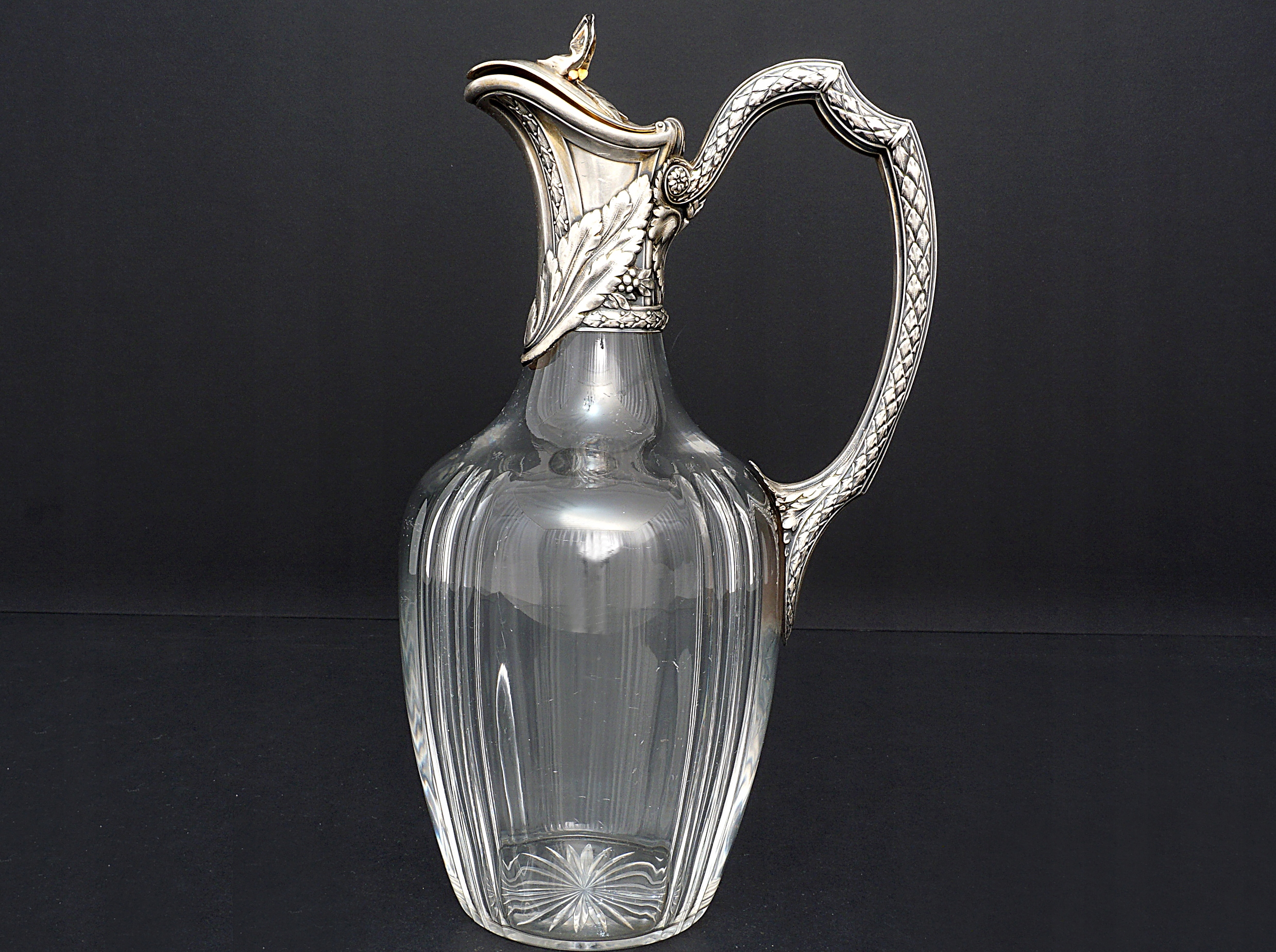 Франция - ХРУСТАЛЬНЫЙ КУВШИН ДЛЯ ВИНА с серебряной фурнитурой - 26 см