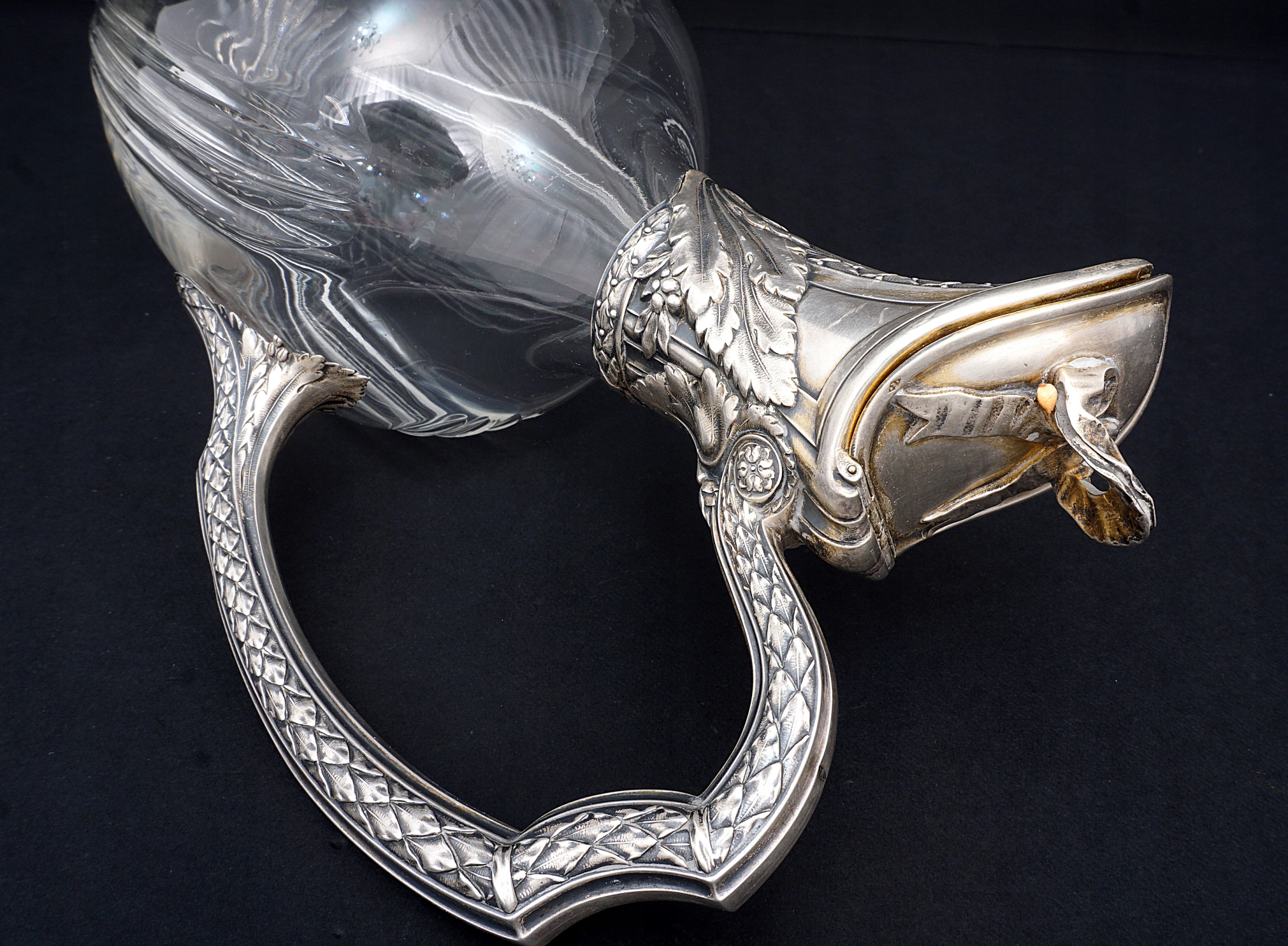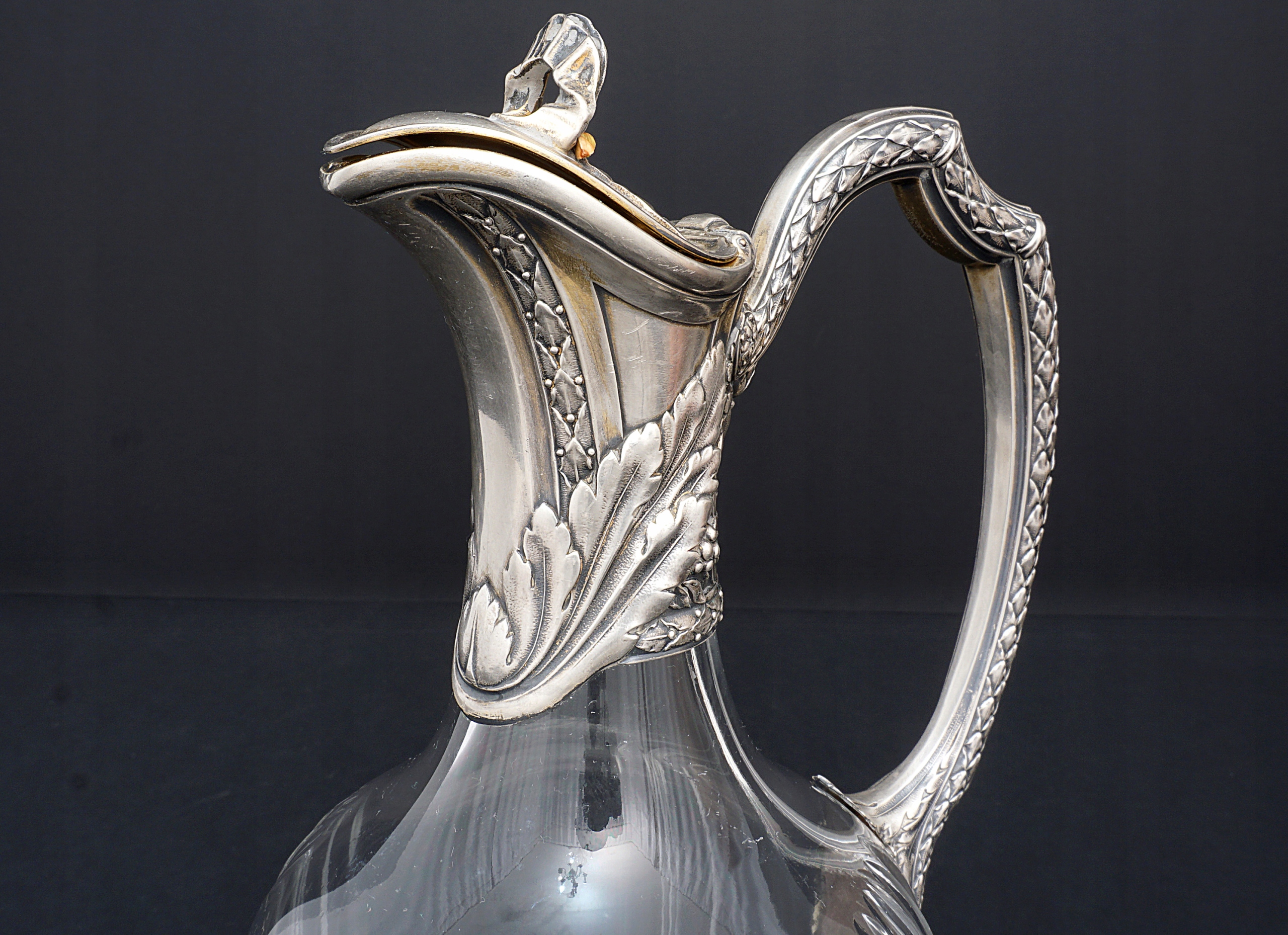 Хрустальный кувшин для вина, украшенный серебром 950/1000 пробы.