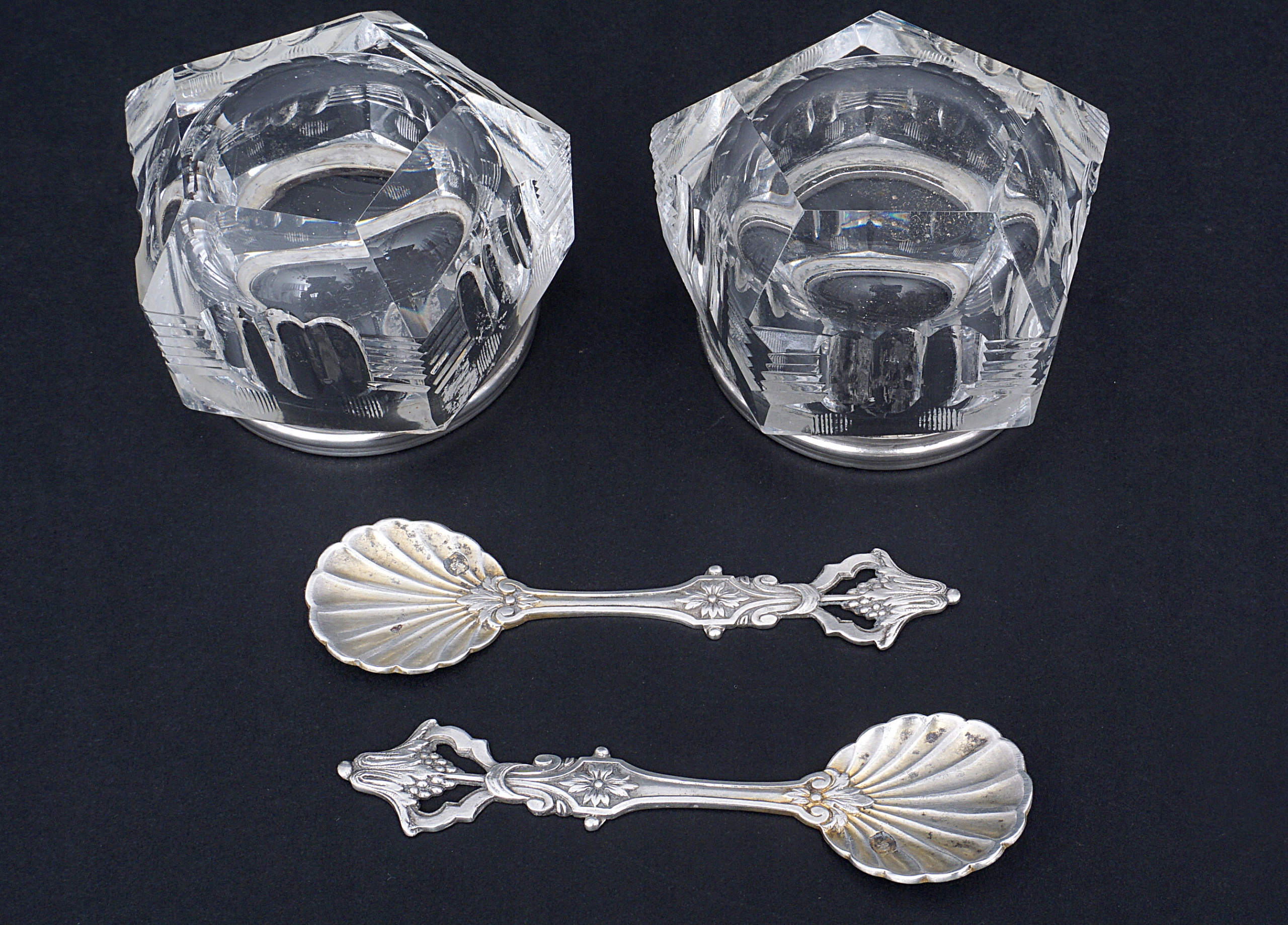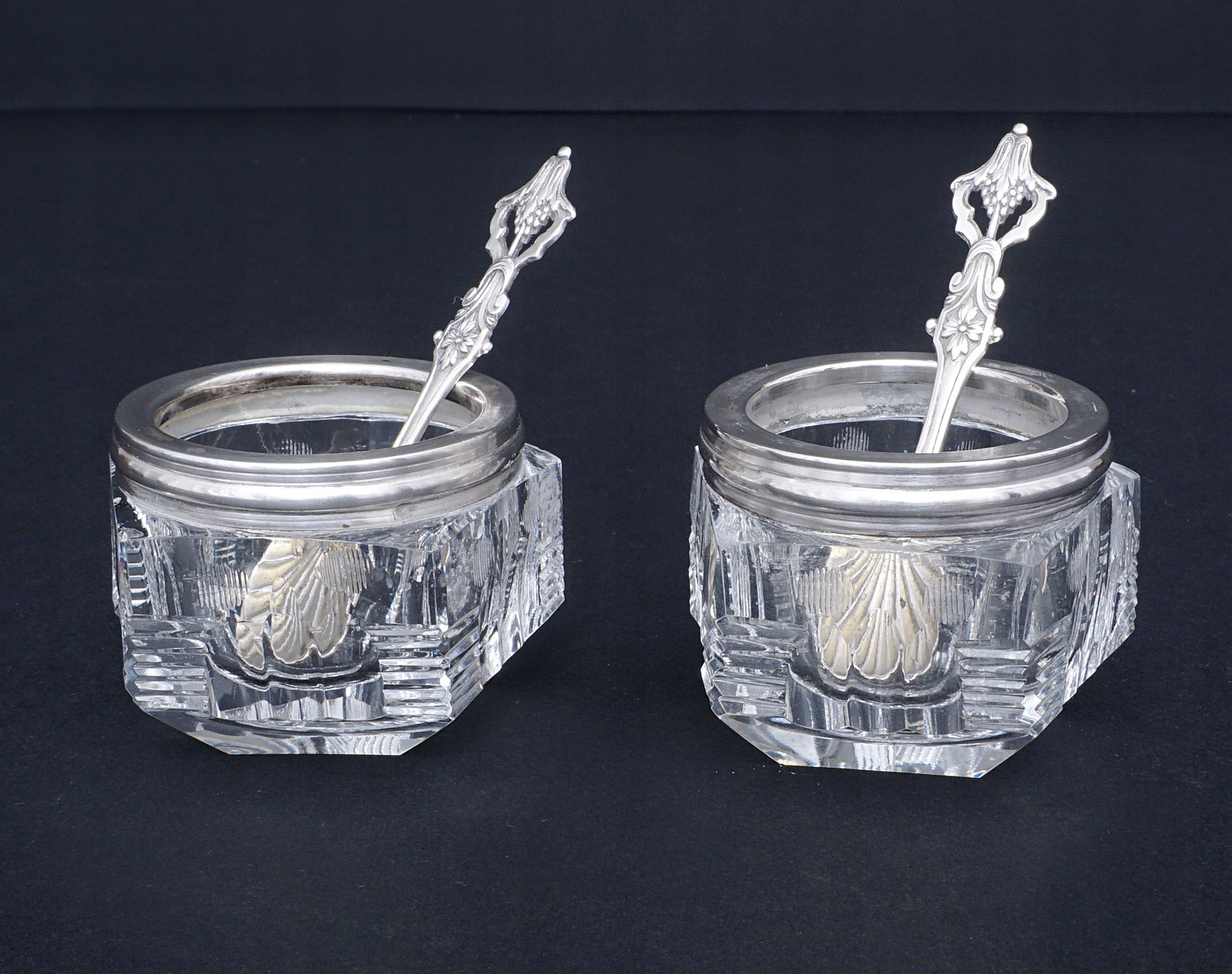 Набор из двух акций хрустальной соли с чайными ложками в кассете.